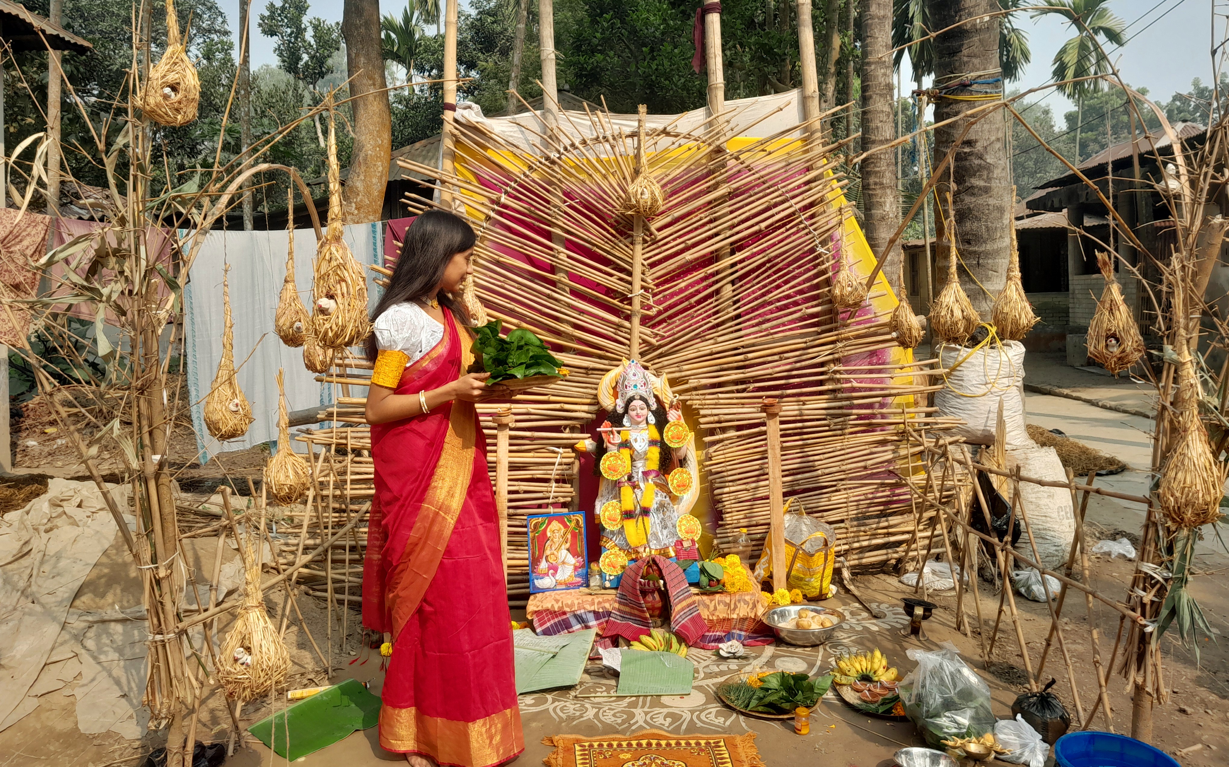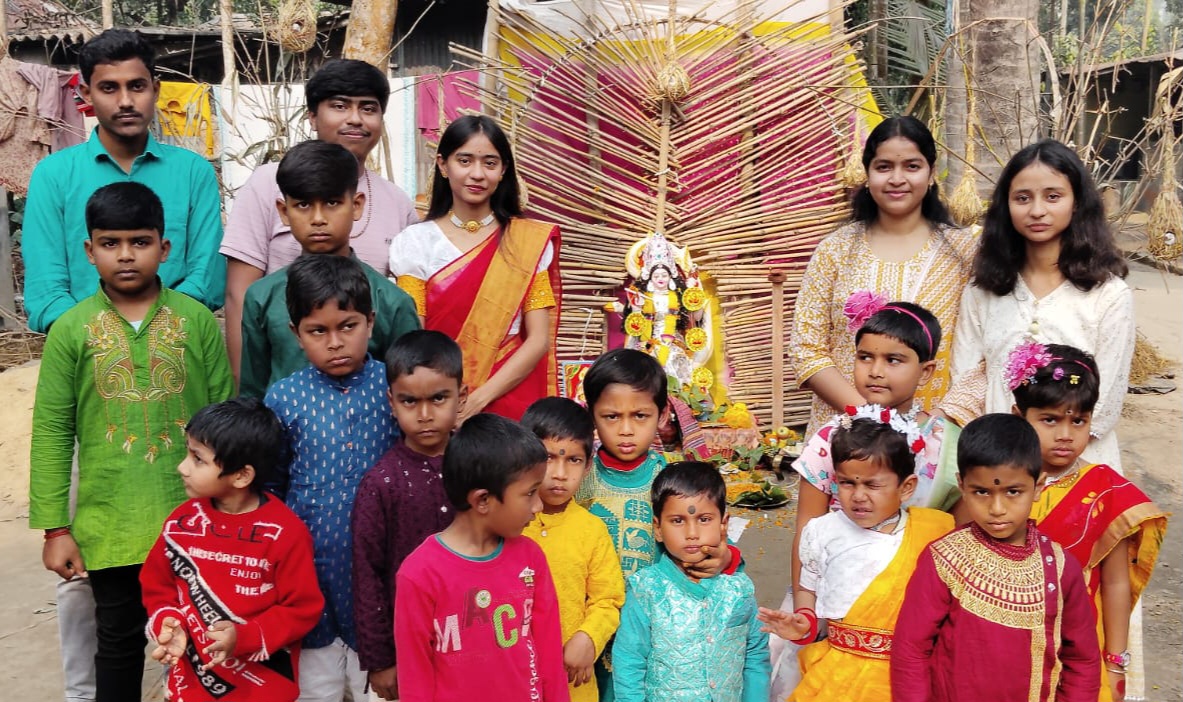 তারপর আর কি বসে পড়লো পুজো করতে। অঞ্জলি হলো, ছোট বাচ্চাদের হাতেখড়ি হলো। তারপর পুরো মশাই তার দক্ষিণা নিয়ে চলে যায় এবং আমি সবাইকে প্রসাদ বিতরণ করি। সবাই মিলে সেখানে ছবিও তুলে নেই। আমরা এভাবেই প্রতিবার আনন্দ, মজার মাধ্যমে পাড়ার পুজো কাটাই।