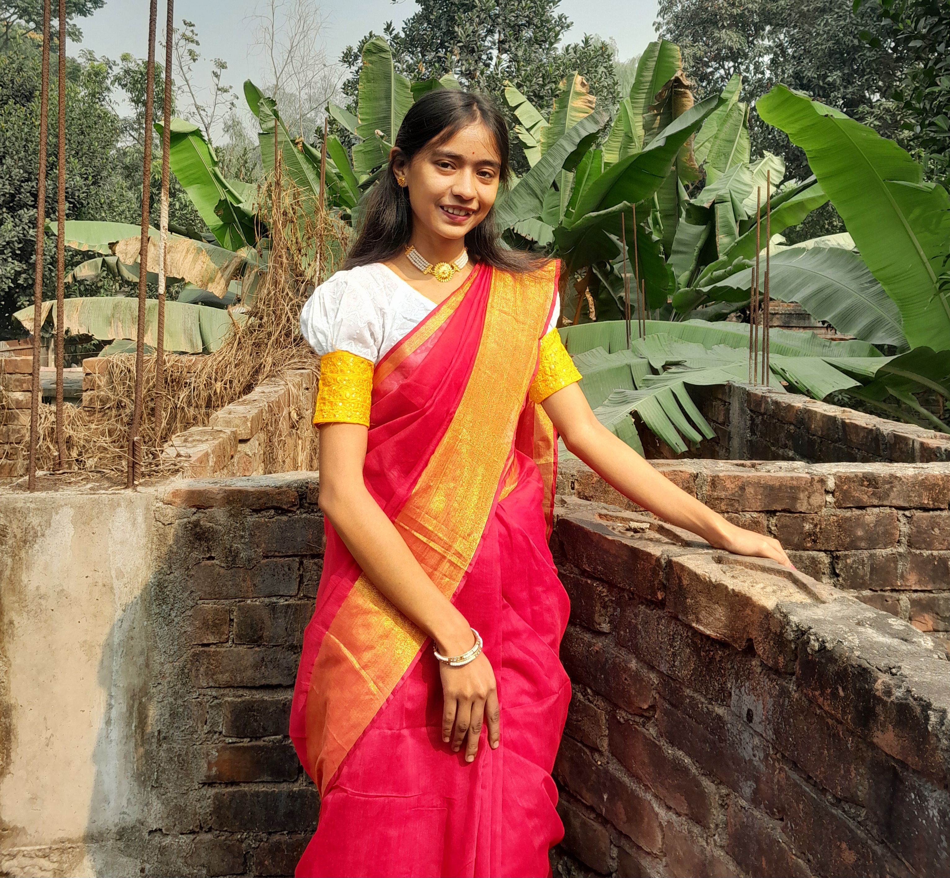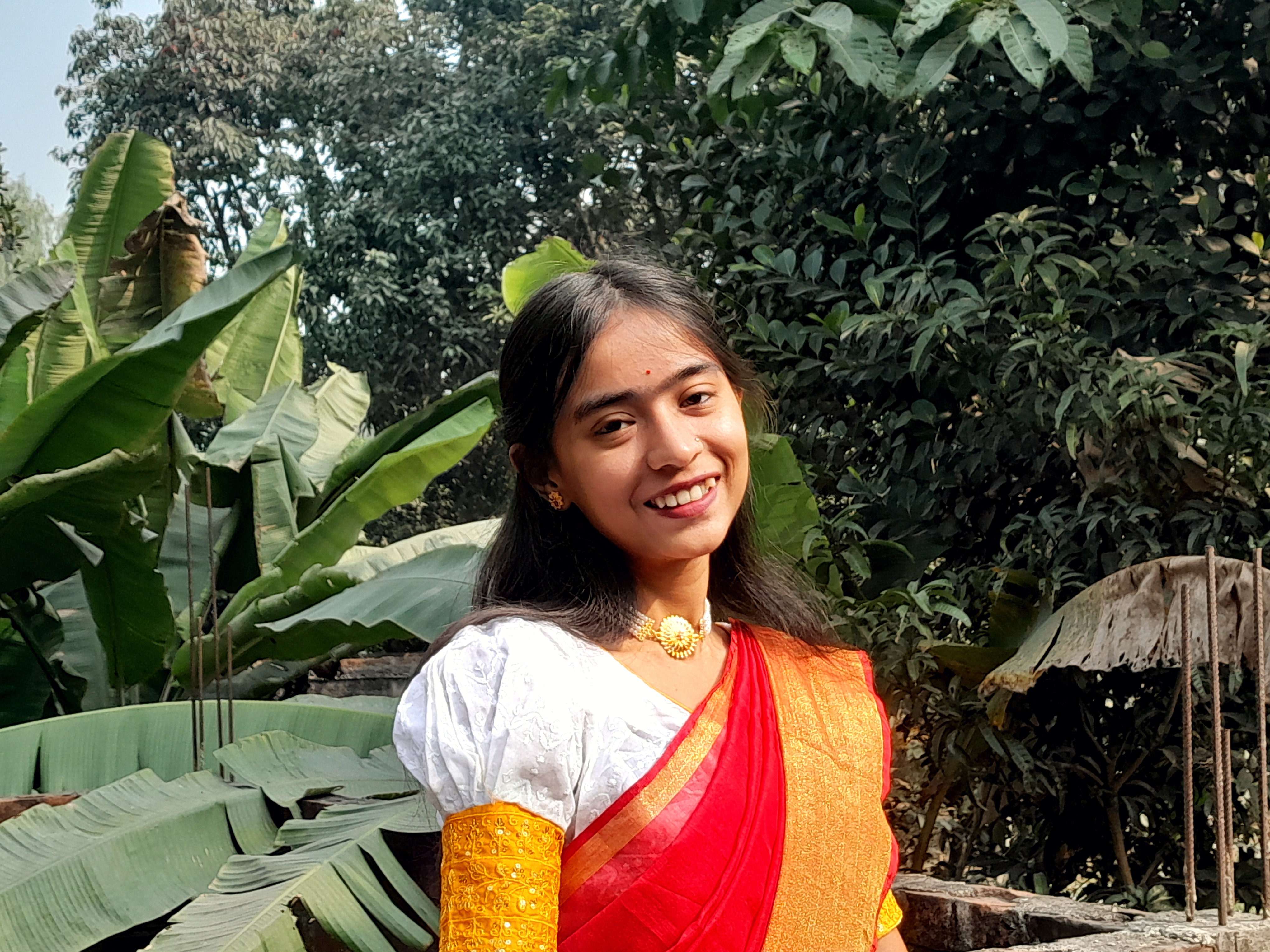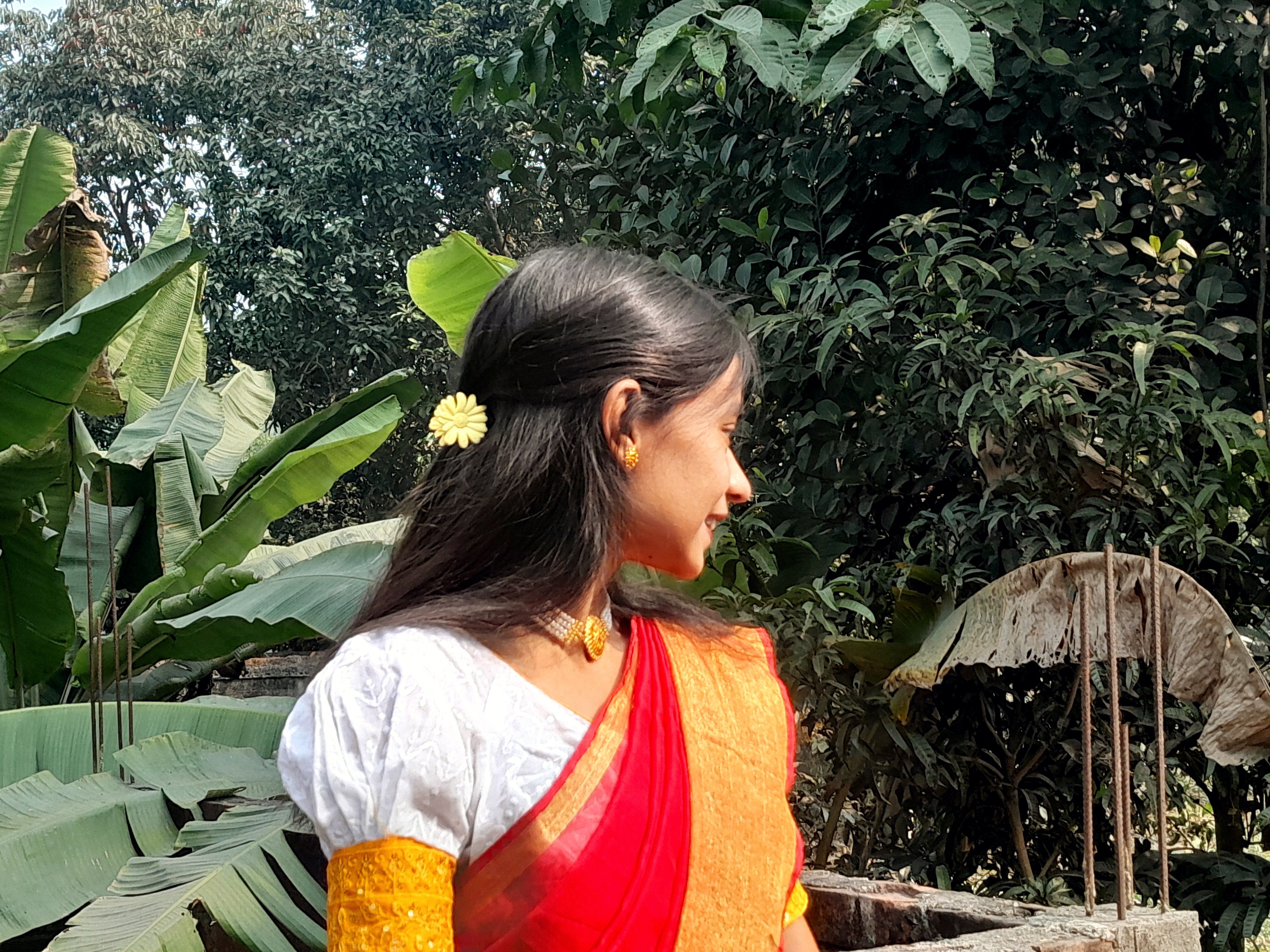 এবার সরস্বতী পুজোর লগ্ন সারাদিনই ছিল প্রায়। সকালে পুজো কমপ্লিট হলে বেশি ভালো হয় কারণ ছোটরা অঞ্জলি দেয়, তারা বেশিক্ষণ না খেয়ে থাকতে পারবে না। তারপর আমরাও অন্য কোথাও ঘুরতে যেতে পারবো। সেই মতোই পুরোহিত মশাইকে বলা ছিল সকাল সকাল আসতে। সকালে উঠেই স্নান করে নিয়েছিলাম। সরস্বতী পুজো মানেই তো শাড়ি। তাই শাড়ি পরতেই হবে। একটা দিদির কাছে চলে গেলাম শাড়ি পড়তে... দিদিটার নাম হল পুচকি, নামটা পুচকি হলেও বয়সে কিন্তু আমার থেকে বড়। পাশেই বাড়ি, দিদি হয়। খুব সুন্দর করে শাড়ি পরিয়ে দেয়। সুন্দর করে শাড়ি পরিয়ে দিল। তারপর পুজোর প্যান্ডেলে গেলাম।