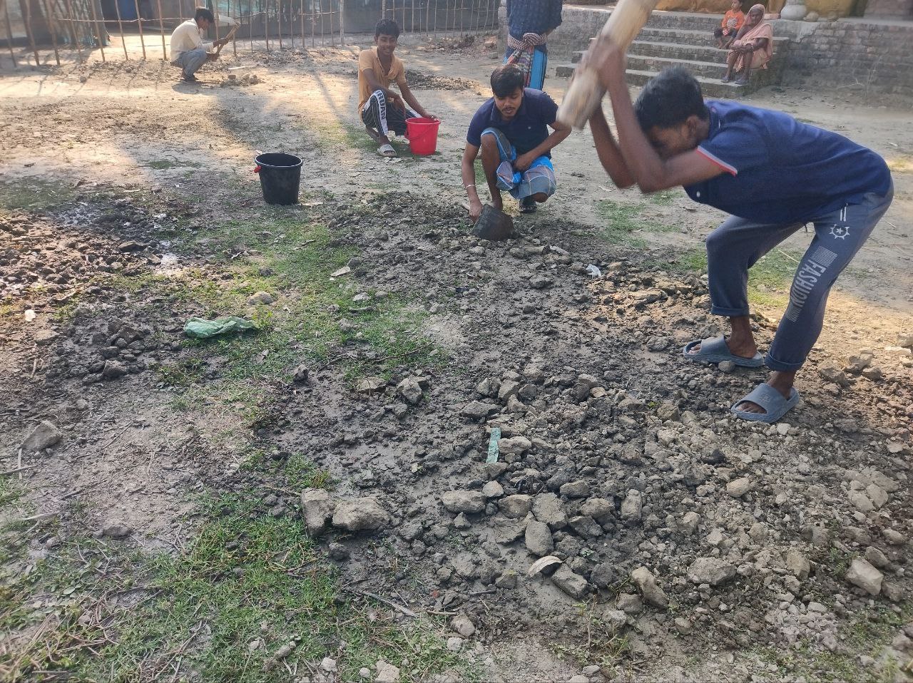 আজ সকালে খাওয়ার পর সবাই মিলে মাঠে গিয়ে খেলার উপযুক্ত মাঠ তৈরি করতে গিয়েছিলাম। যাই হোক, আজ ছুটির দিন ছিলো তাই সবাই উপস্থিত ছিলো।