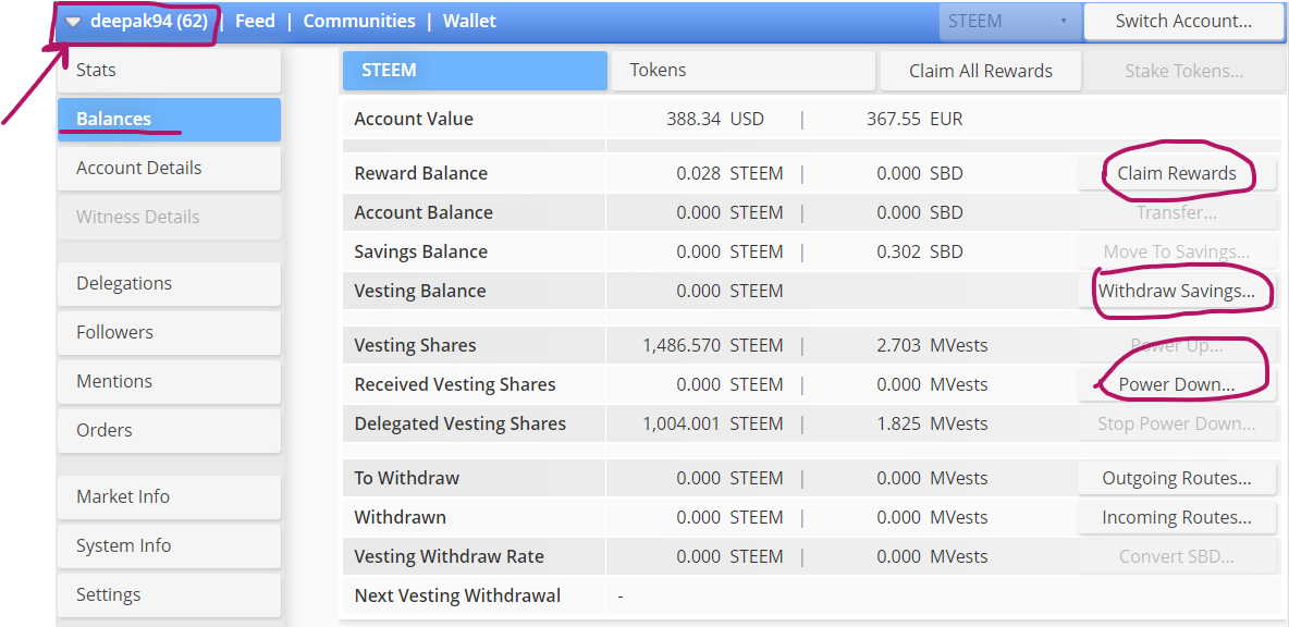 Now in this entire tab you can know your balance detail and you can handle you steemit curation reward with the use of your private active key. Here you see the rewards ( claimed and unclaimed). You can click on claim all rewards by entering your privatae active key.