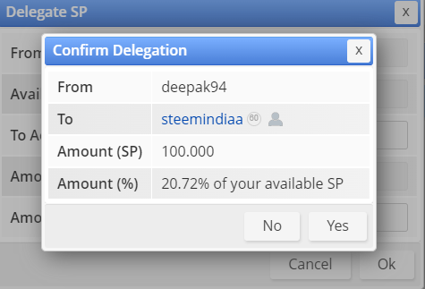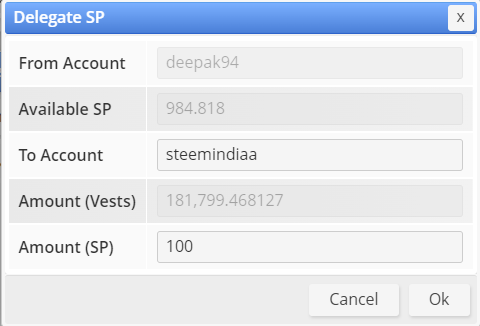 - I just give the example where I delegate 100 SP to #steemindiaa Comunity.