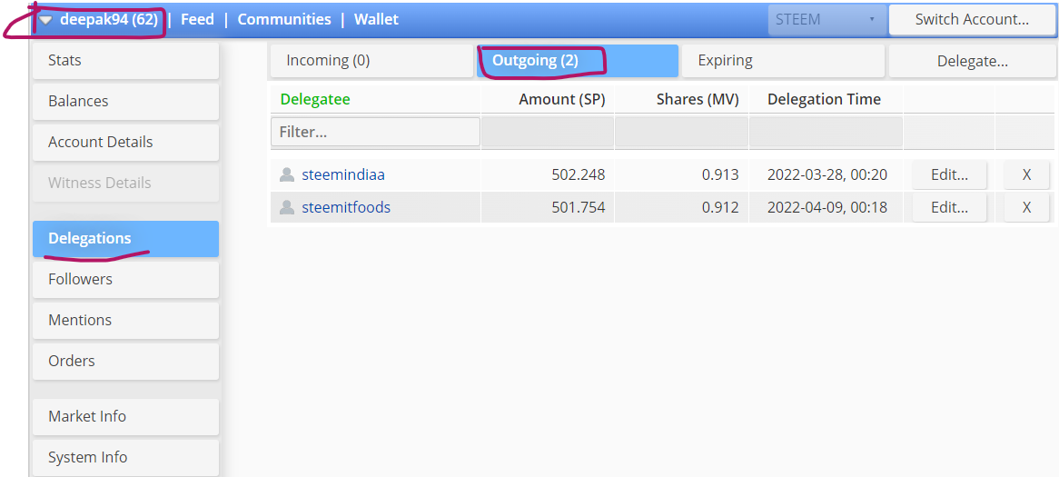 On this tool you can see the delegation details of your account and you can also delegate our SP to promote our community.