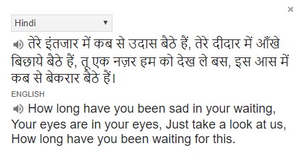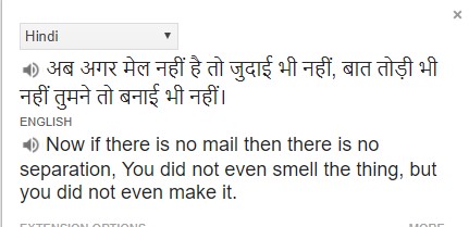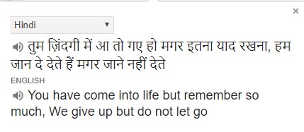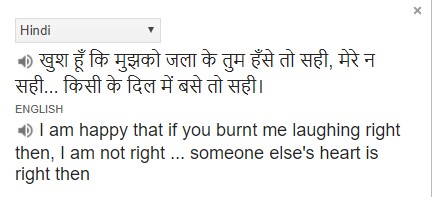 Note: Images are snapshots of Google Translate. Shayari Source: http://hindi-shayari.in