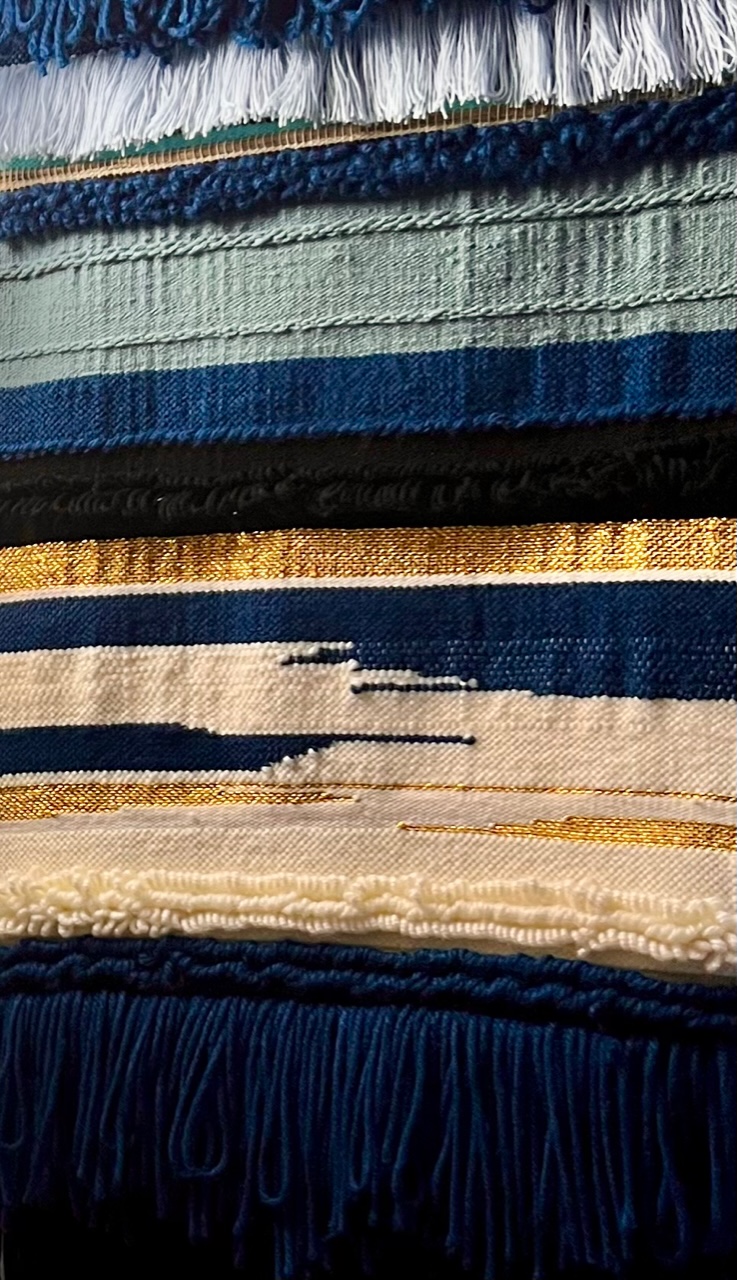 This work was created out of boredom, from getting tired of spending too much time on phones and laptops, and a desire to weave by hand for the first time.