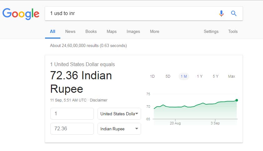 और रुपया में भी आज फिर से गिरवाट देखने को मिली है आज रुपया 72.40 का हो गया है। कल सुबह देखना 73 पहुंच जाएगा। रुपया हर रोज थोड़ा थोड़ा कमजोर होते ही जा रहा है। अभी परसो ही मैंने पोस्ट डाला था उसमे 72.10 था और आज फिर से कमजोर हुआ है।