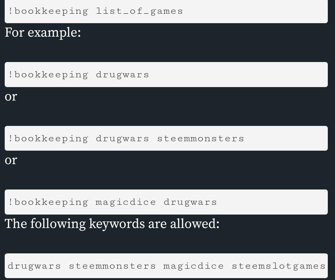 Witness @holger80 who is best known for for creating Beem (A python library to interact with steem) has introduced a new tool to Steemit Blockchain called @bookkeeping through this you will be able to know how much you have spent on one particular game and how much you have earned back and how much more do you need to break even.