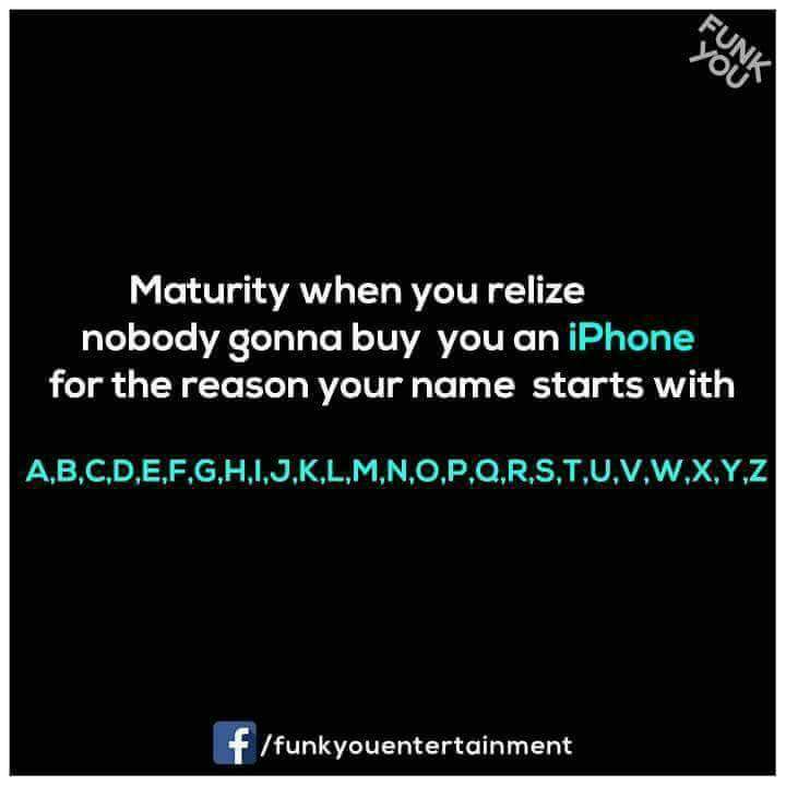 Maturity is, when you realise that nobody gonna buy you an iphonesunny2502735 (58)in #india • 8 years ago Image Credit- https://m.facebook.com/funkyouentertainment/photos/a.272569819534304.1073741828.271247409666545/950486975075915/?type=3&source=48 #photo