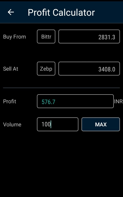 If you click on the "₹" sign you'd be taken to profit calculator, this is really a nice feature needed to calculate just how much you can make with the amount of cryptocurrency you have.