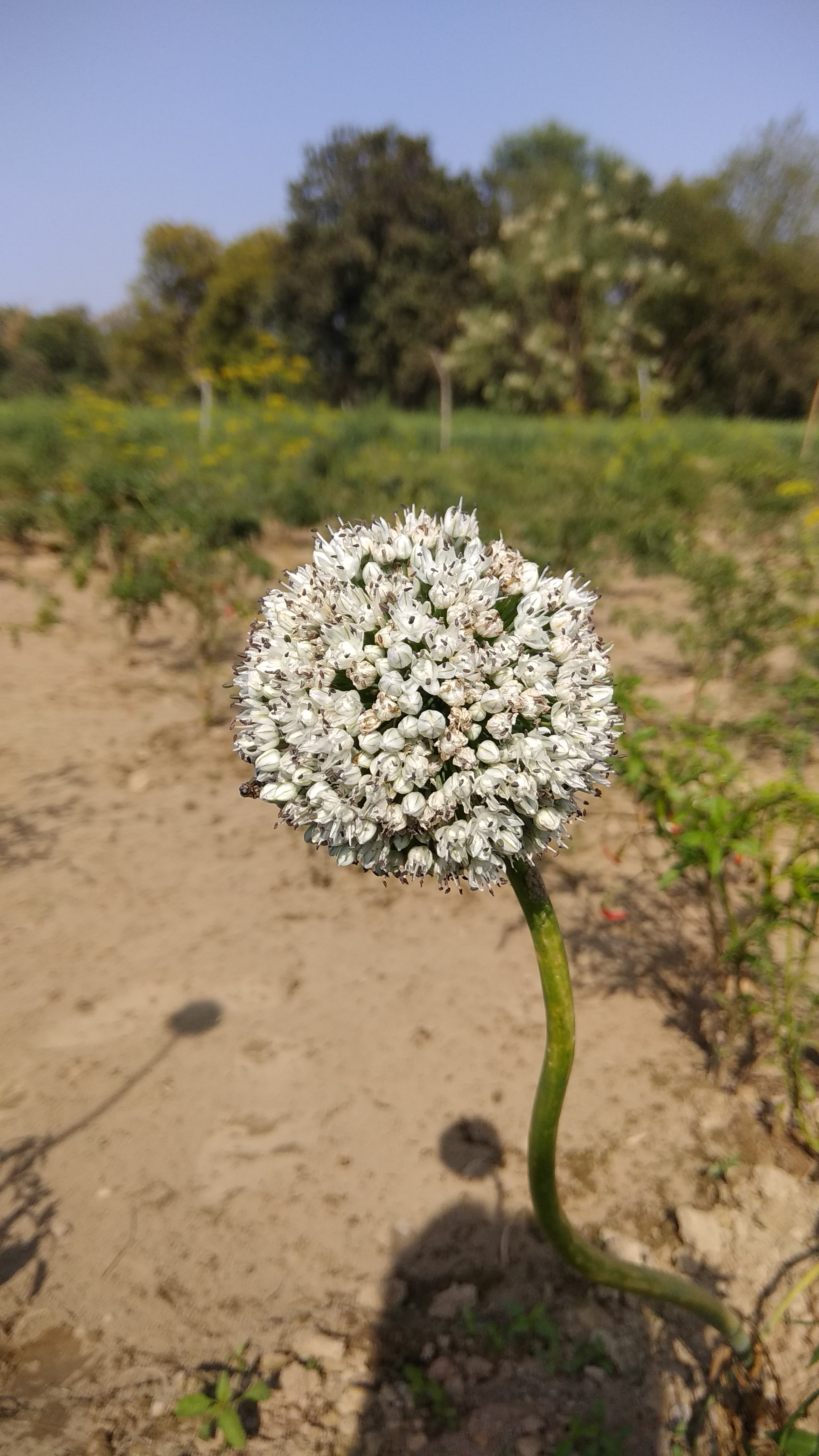 feeld ko taiyar Kar usme onion seeds ko bote hai fir uske chote chote paudhe hi Jane par use punah khodkar dusre feeld me bote hai. Lagbhag 3 month bad ye bade ho Kar onion flower Nikal ate hai. Jo bahut hi khubsurat lag rahe ap Dekh sakte hai jise Maine Apne smart photography kar post kiya hai.