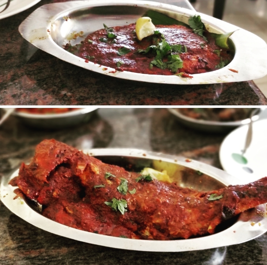 If you are in Mangalore and want to experience the traditional taste of south Indian seafood this is the place. Even during the weekdays, this place is usually very crowded during the lunch hours and you would have to wait for your turn. They opened their family section for us which is just adjacent to the main restaurant. We ordered Surmai Fish for the starter- red and spicy looking. It was downright delicious.