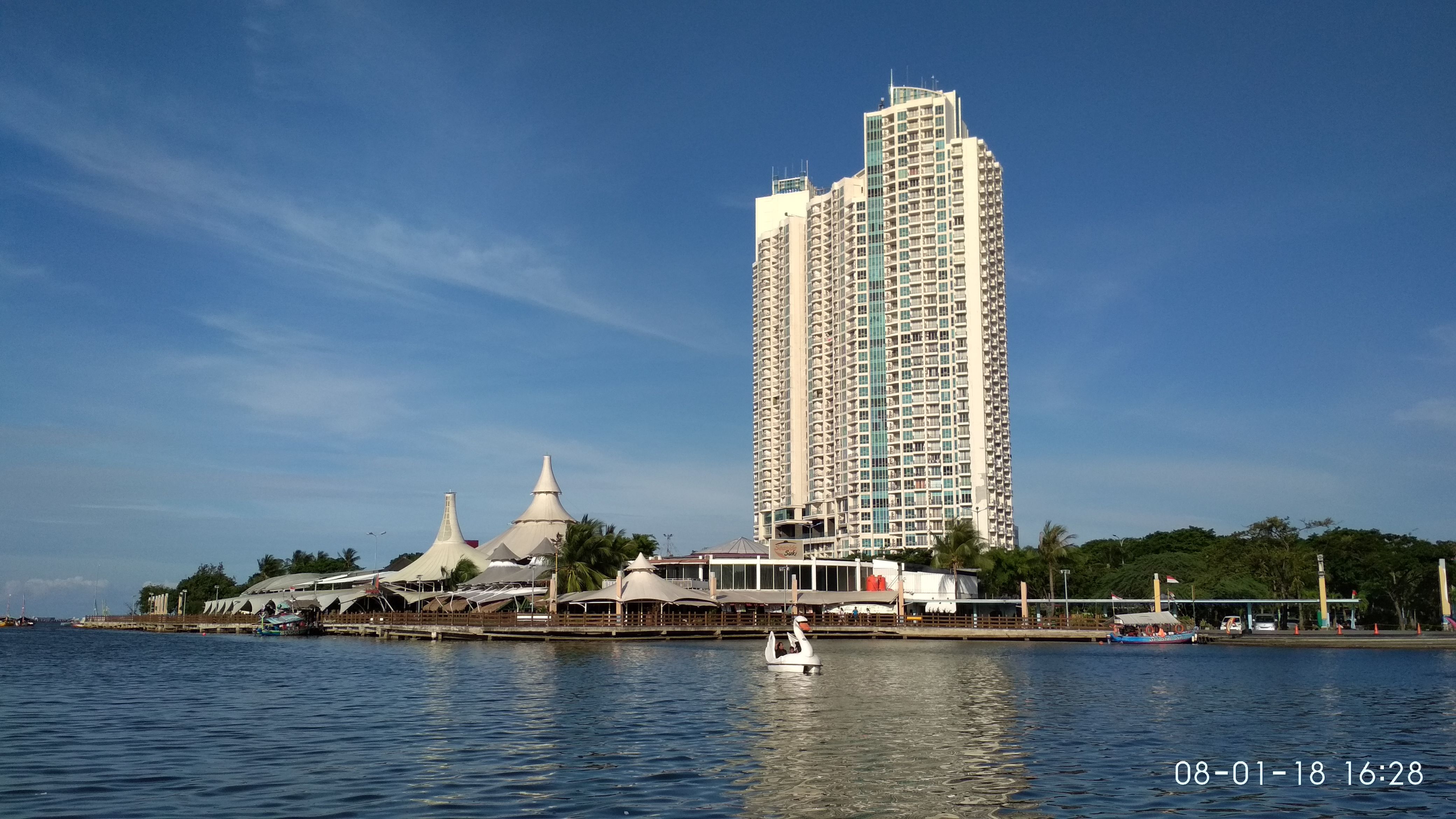 Sarana Bermain di Tempat wisata pantai ancol jakarta dan potret gedung yang indah