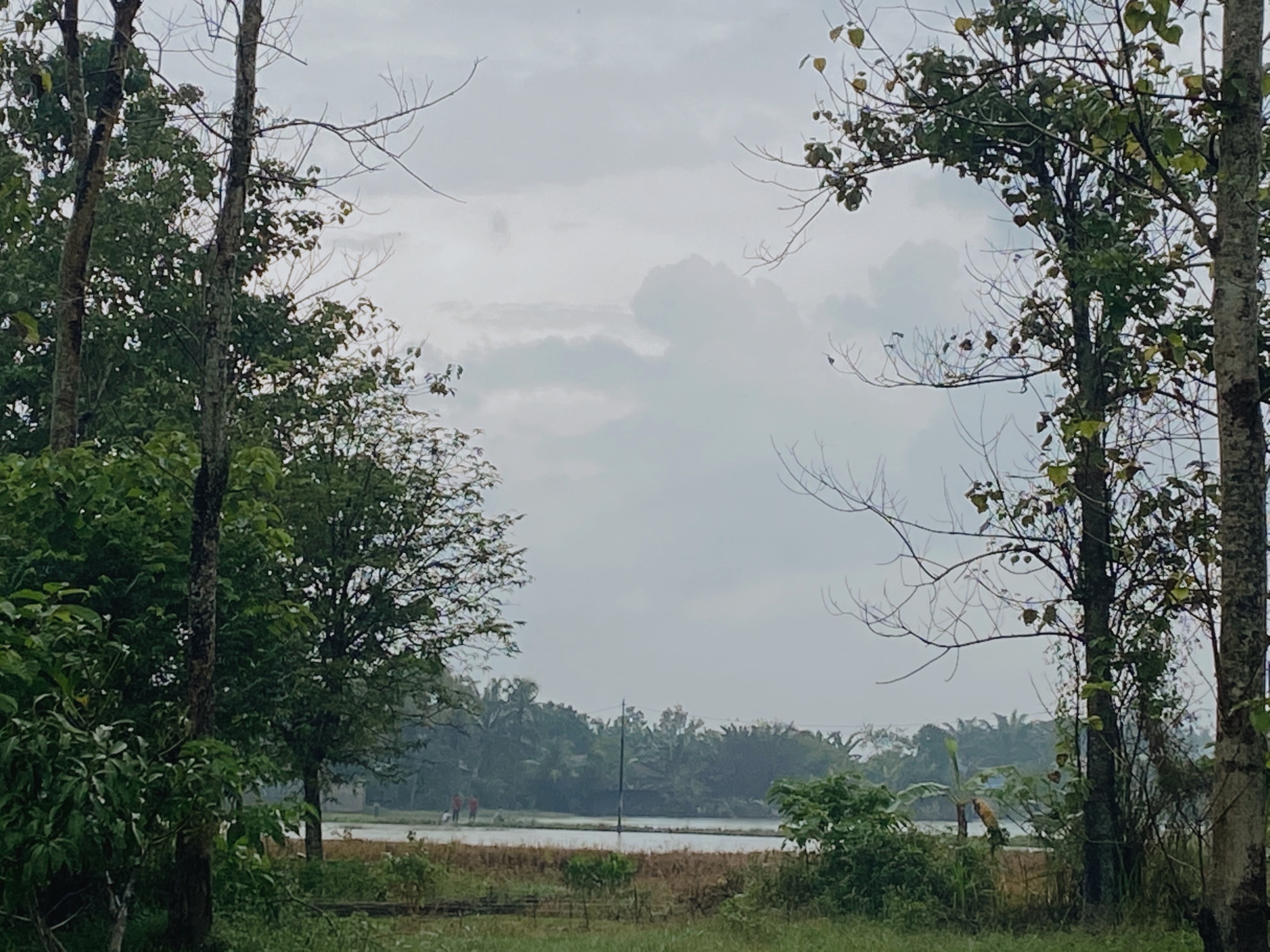 Langit siang yang berawan setelah hujan. Di sana ada sawah-sawah yang banjir dan tidak dapat ditanami pada untuk saat ini, entah nanti.