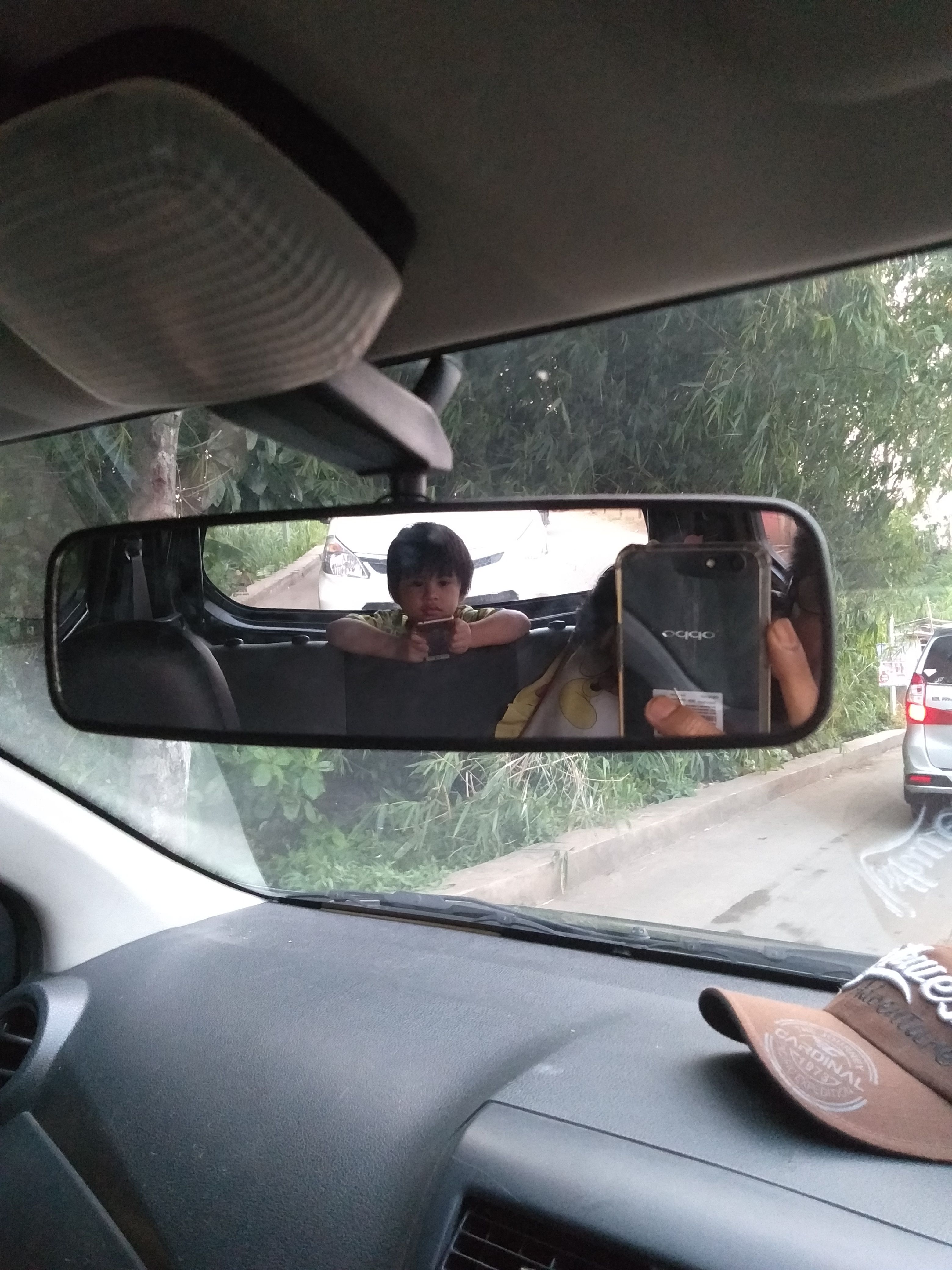 Ane ni ari antar Boss yang menuju lokasi bisnisnya, dia asyik duduk dibelakang, namanya juga Boss, ane nyetir ga sempet nengok ke belakang, jadi ane photo dari spion aje.