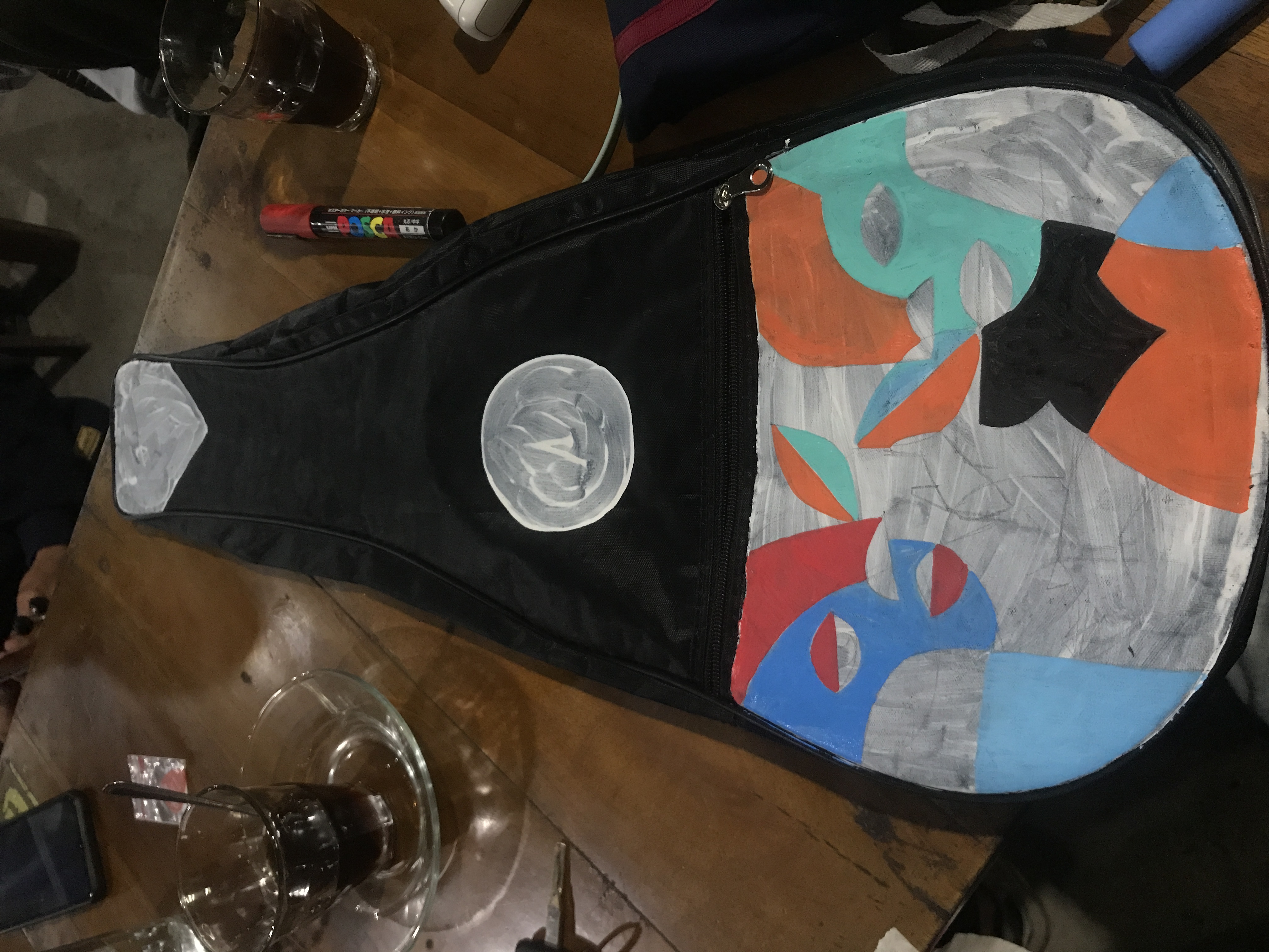 Apa kabar para pengguna sosial media yang budinet, malam ini saya ingin berbagi hasi karya saya, yang sengaja di reques oleh salah satu teman saya yaitu @paskadom, dengan sengaja meminta agar saya mengcustom bag ukulee terbarunya, yang baru beberapa hari di belinya, beliau meminta sedikit lebih berwarna agar bag ukelelenya terlihat lebih menarik, unik tapi tetap bersahaja, karna itu saya mencoba beberpa warna yang jarang saya gunakan, namun tetap terlihat nyaman saat di pandang, kombinasi warna2 baru membuat bag yang berwarna hitam polos terlihat begitu jelas gambar yang saya buat, berikut prosesnya,