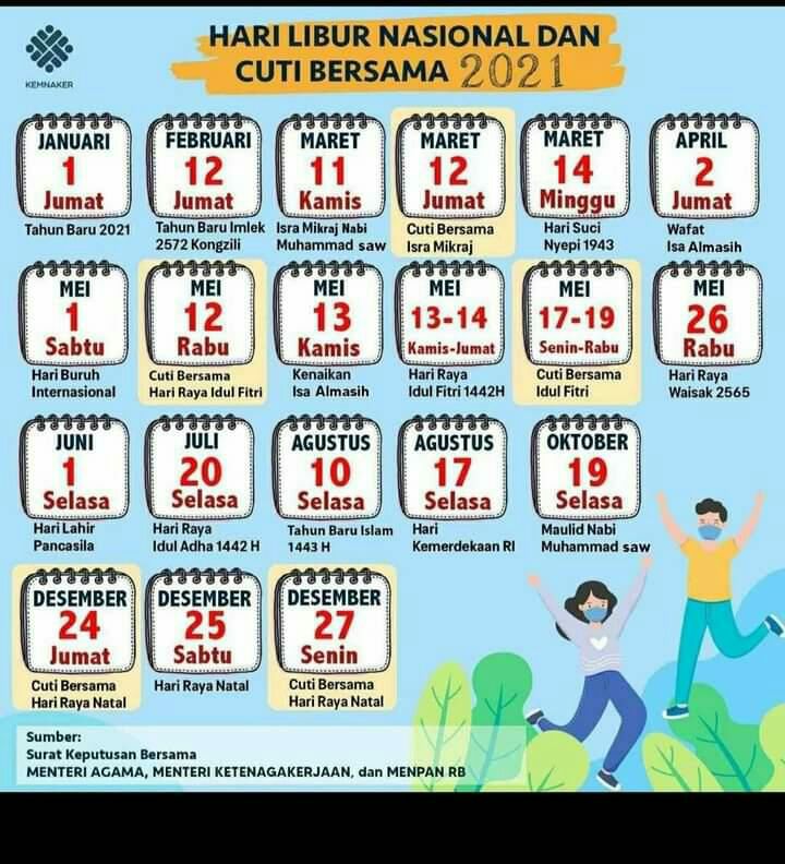 Sepanjang 2021, hari Jumat dan hari Selasa paling banyak kedapatan tanggal merahnya. Masing² sebanyak enam kali.
