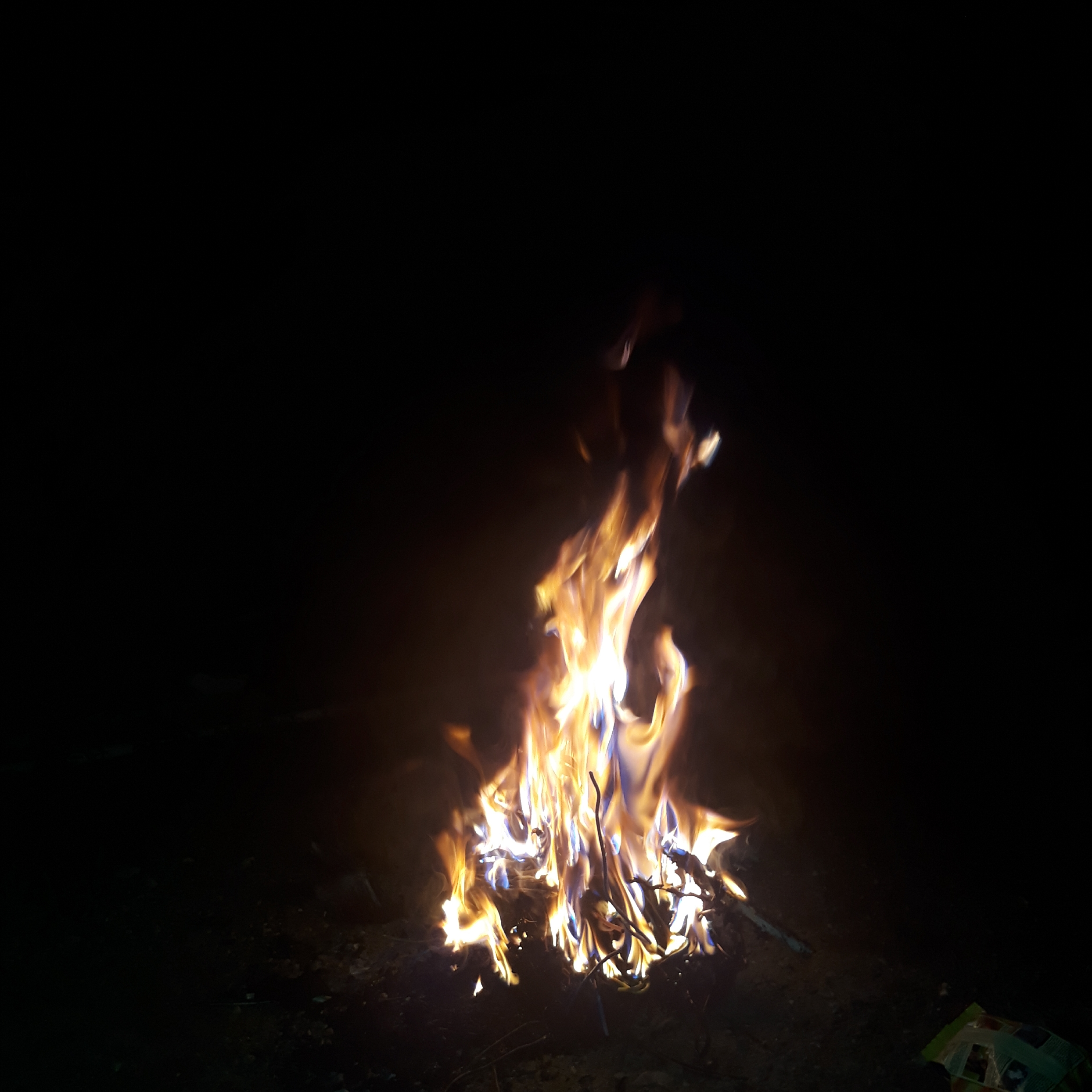 Dengan ditemani pangeran kecil saya dan api unggun tetangga yang Indah mampu membuat suasana menjadi hangat dan larut dalam menyaksikan habisnya kayu-kayu bakar tersebut dan berubah menjadi abu.