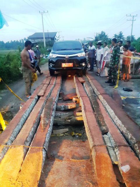 Bridge collapsed Simpang KKA Paloh pepper border Pulo Rungkom to Bener Meuriah which had collapsed, was at around 18. 45 wib already completed repair can be crossed two and four wheels normally back