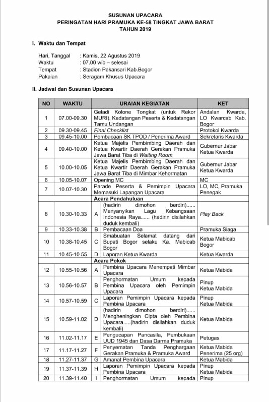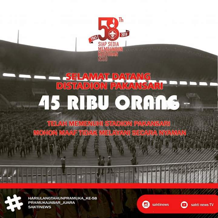 Hari ulang tahun Pramuka ke 58 Jawa Barat dipusatkan di Stadion Pakan Sari, sebuah stadion terbesar di Kabupaten Bogor. Acara tersebut diikuti oleh hampir seluruh Gugus Depan gerakan pramuka se Jawa Barat. Sekitar 45.000 orang.