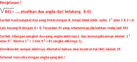Perhatikanlah teknik penarikan akar kuadrat dibawah ini !