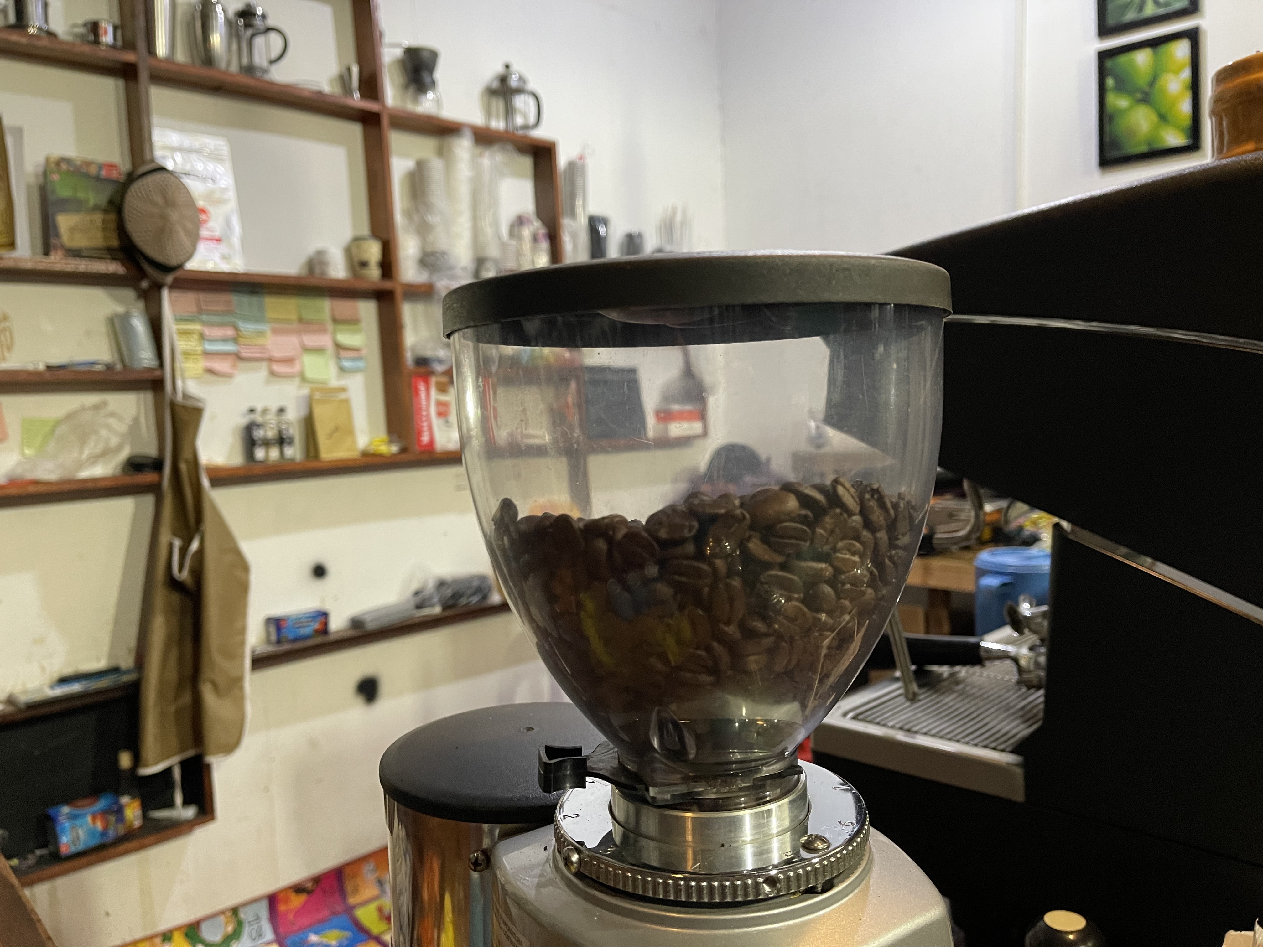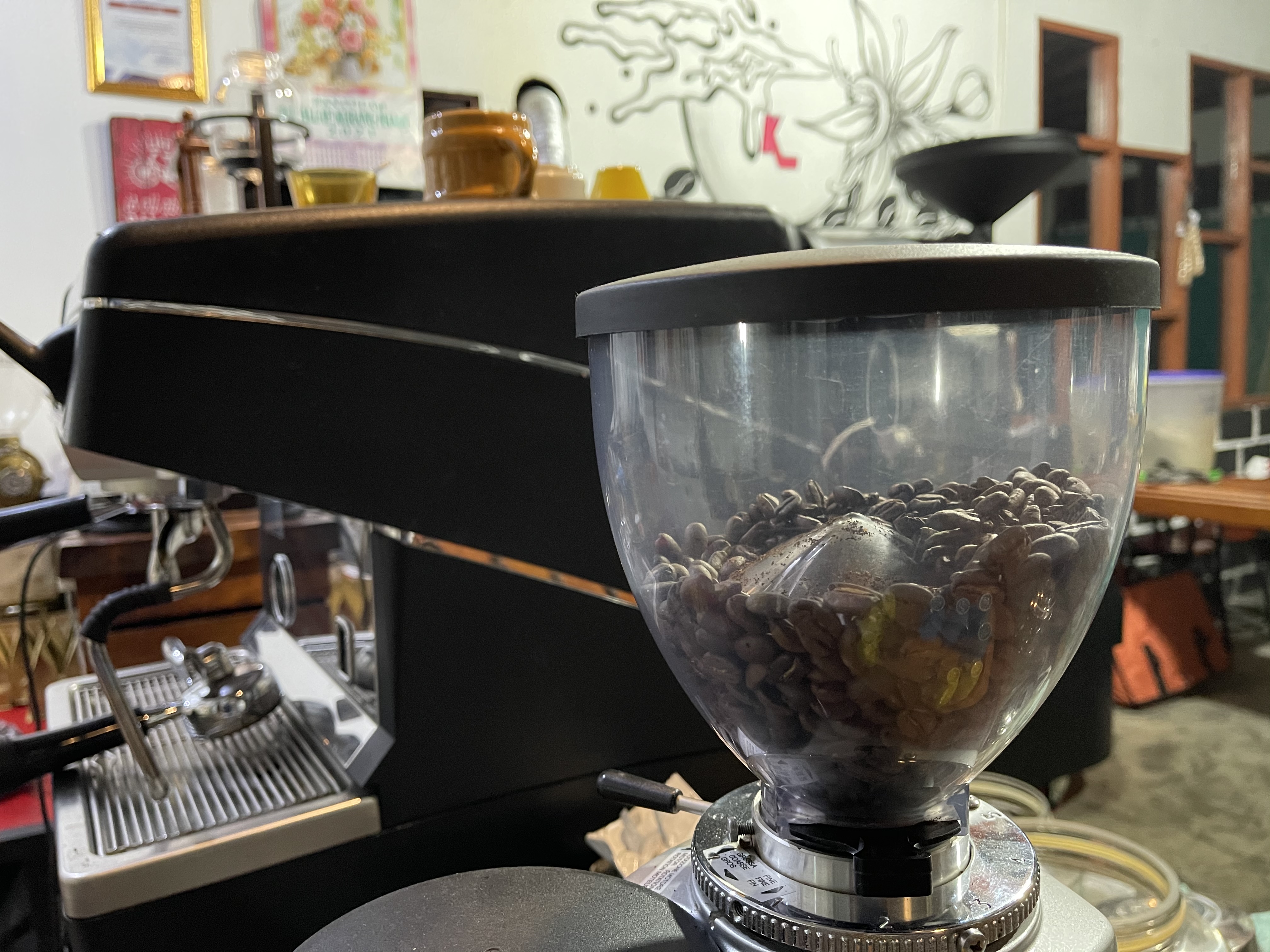 Kopi yang berada di dalam grinder Mazzer ini adalah kopi arabika gayo yang diproses secara fullwash. Dan diroasting pada level medium to dark. Kenred Coffee Shop menyiapkan kopi espresso menggunakan mesin espresso Simonelli satu grup.