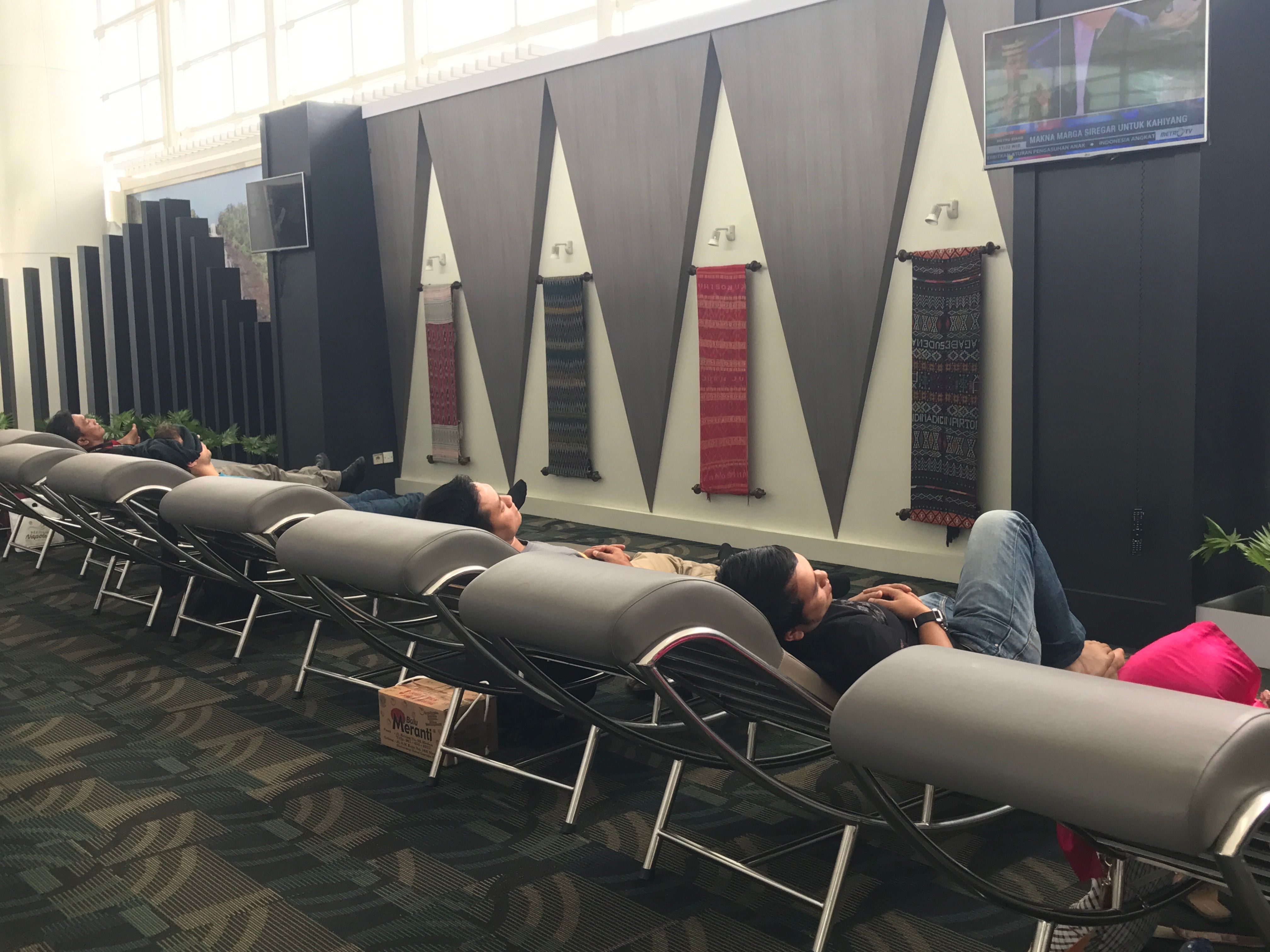 Saat saya disana, seluruh kursi penuh dipakai para traveler. Saya memang tidak berniat istirahat disitu, karena pesawat ke Jakarta tidak lama lagi akan berangkat. Tapi, lantaran penasaran dengan lokasi baru ini, saya singgah sebentar, melihat-lihat detil ruangan ini.