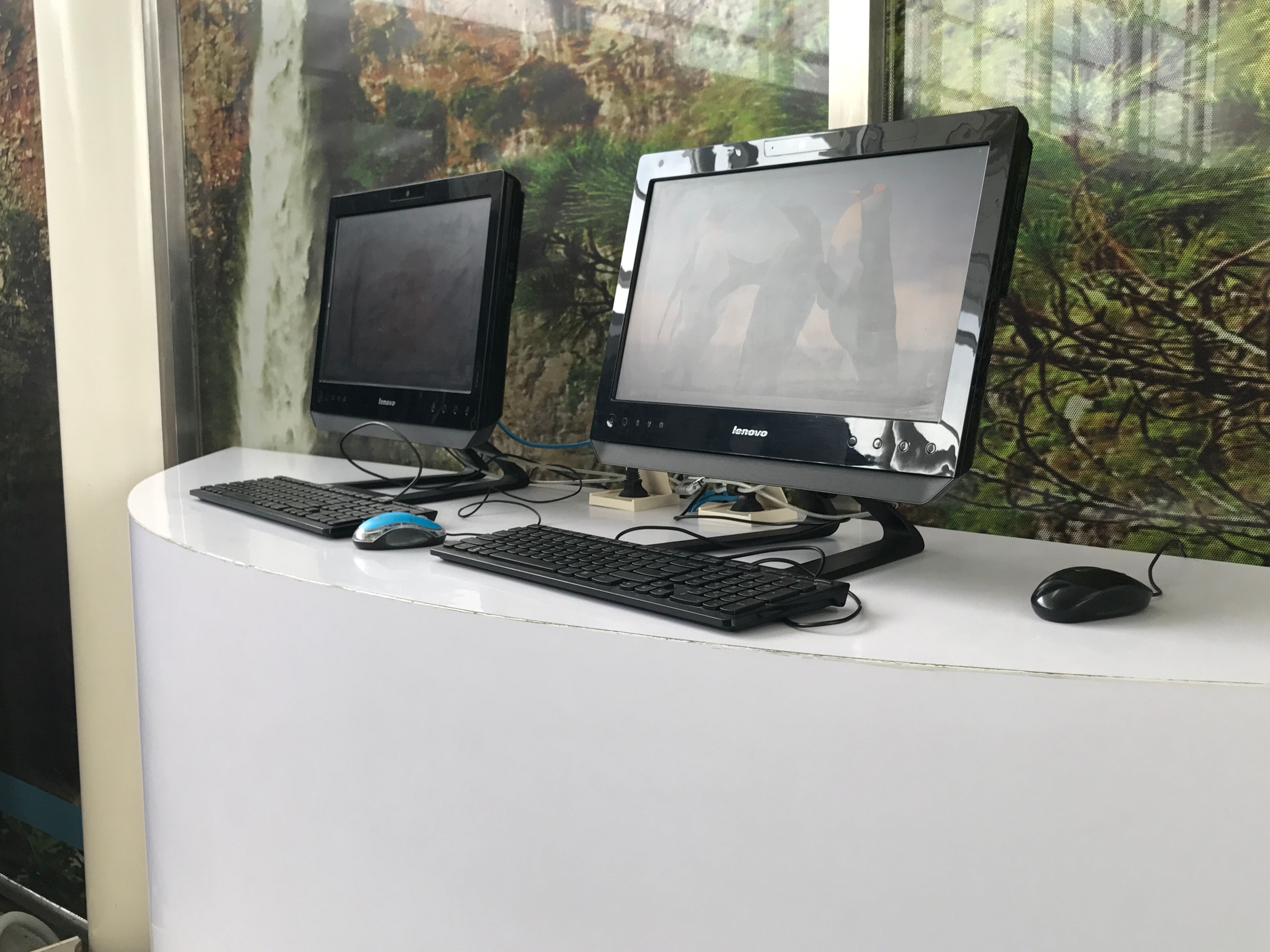 Interiornya sangat bagus dan wah, kombinasi warnanya juga pas. Terdapat beberapa komputer di sisi kirinya, yang mana kita dapat mengakses internet gratis.