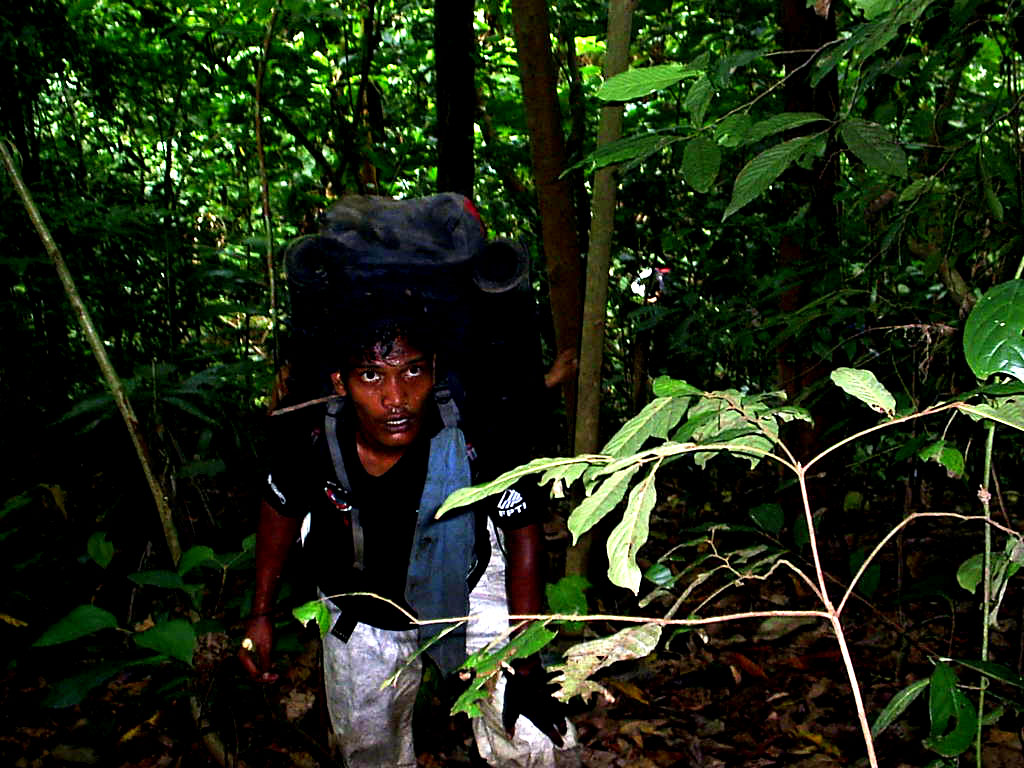 Tanjakan semakin tinggi dan mulai terasa sulit dilalui, di tengah perjalanan kami menemukan area perambahan hutan, kami dapat memastikan bahwa ini adalah kegiatan illegal logging. sebatang kayu besar yang sudah berbentuk persegi panjang yang siap untuk di angkut menuju pemukiman terdekat. kami sempat beristirahat disana lalu mengambil gambar dan melanjutkan perjalanan.