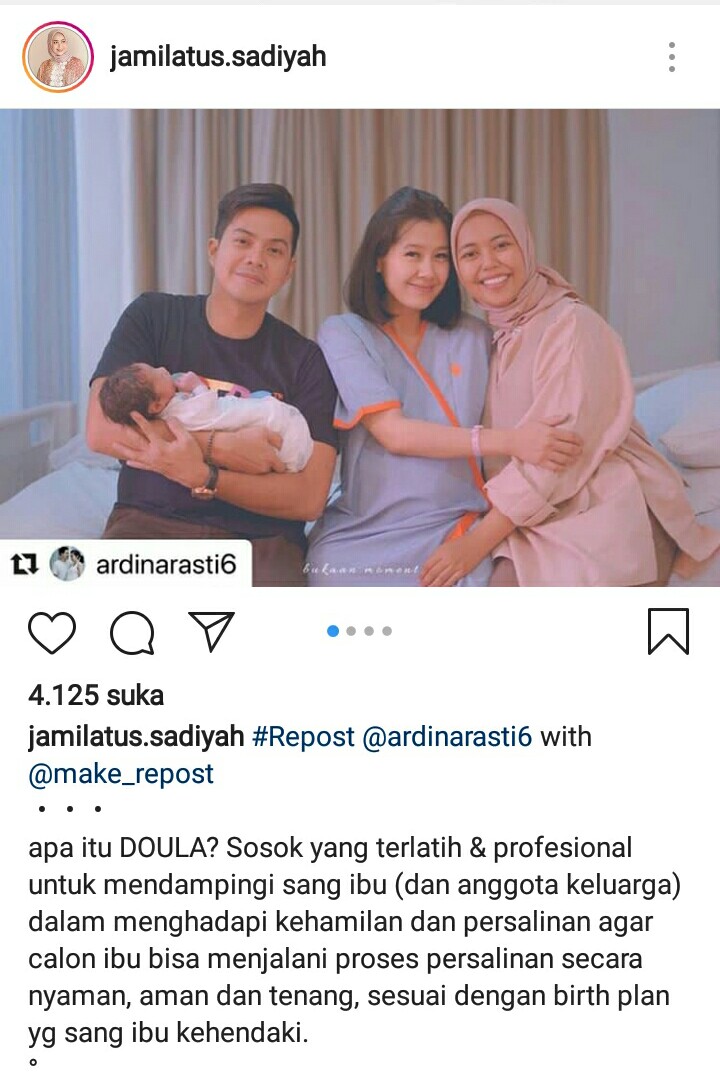 Nah, bagaimana bumil, apakah tertarik menggunakan jasa doula? Untuk informasi lebih lanjut bisa akses DONA International melalui www.dona.org, situs yang menyediakan informasi terkait doula. Atau bisa pantau IG nya Mbak @jamilatus.sadiyah.