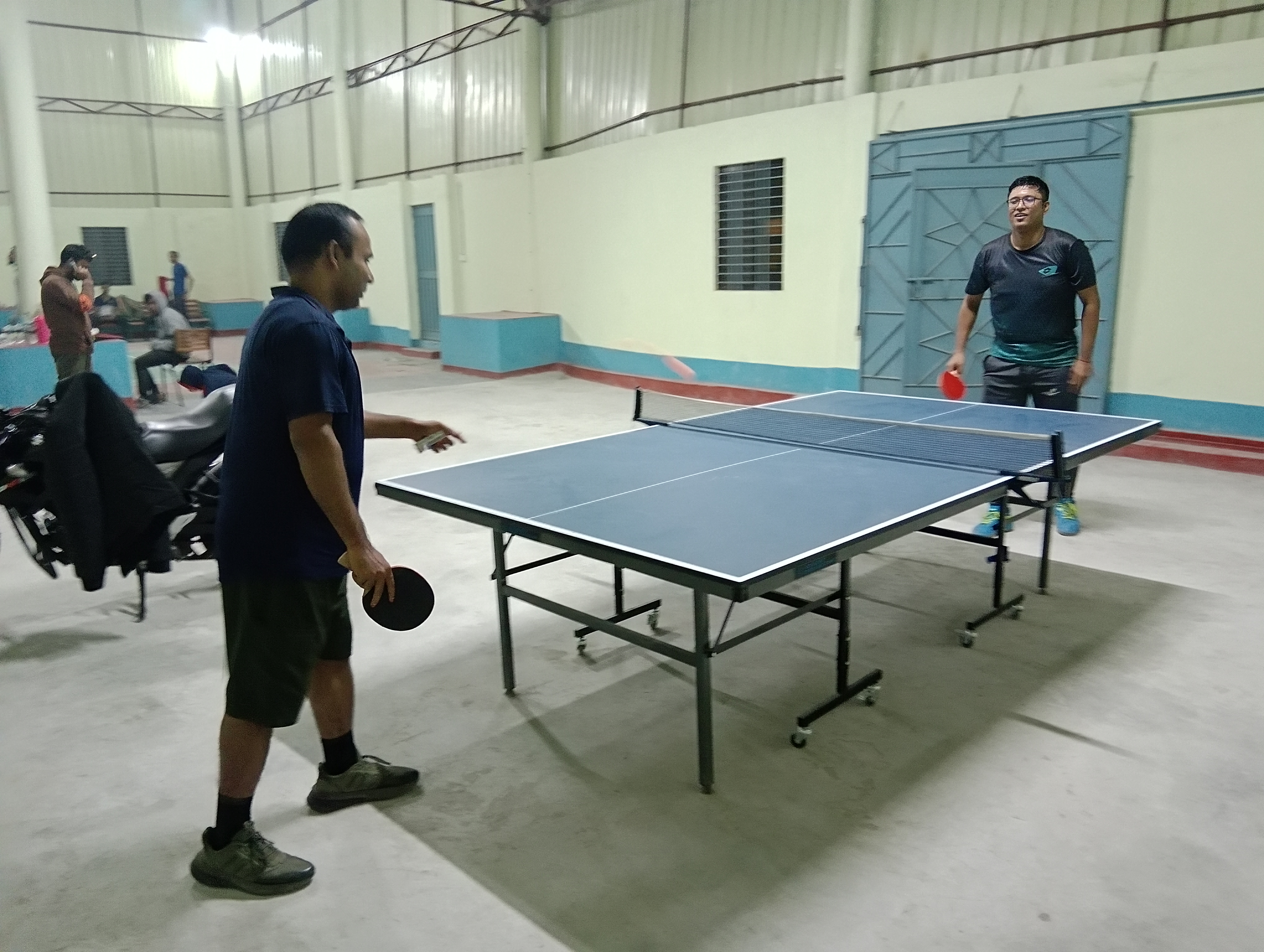 This sports center has adequate lighting within it. We can play badminton and table tennis under the bright lights without any problems.