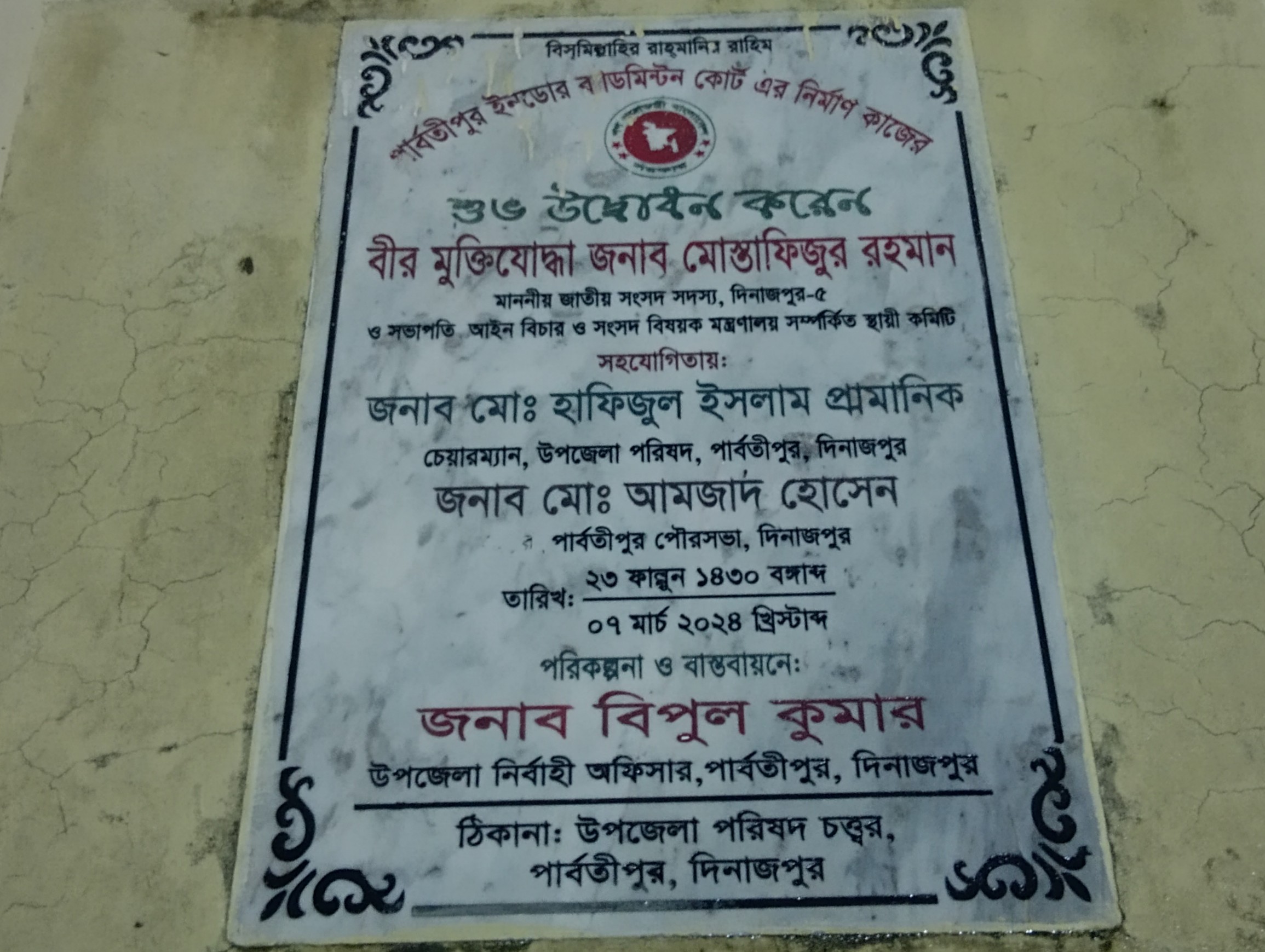 🏗️ Opening Plaque 2: Construction of the Badminton Court – Parbatipur