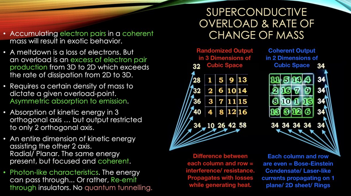 But in a state of coherence, those same electrons cannot have any conflict or lag. Everything acts as one. And dependent upon the coherent potential in the form of electron pairs that are bound… Those pairs act like a shield with more total kinetic energy than any single electron's energy trying to disturb that state... up to a point.