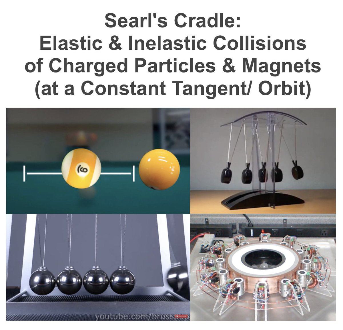 Searl's Cradle: Elastic & Inelastic Collisions of Charged Particles