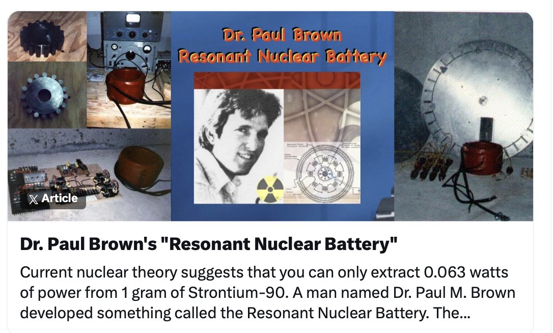 Dr. Paul Brown's Resonant Nuclear Battery: