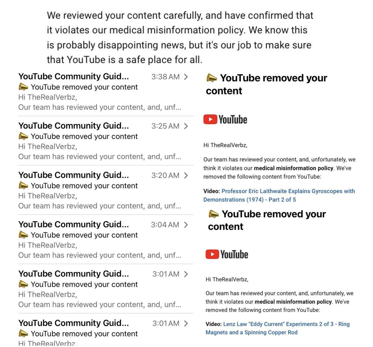YouTube deleted these discussions and videos because they labeled each one of them individually as "medical misinformation."