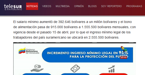 So If one dollars cost us 2.050.345bsF it means that 1.300.000 is 0.63 dollars. So yes, with just 0.63 cents of a dollar we can buy one Kg of cauliflower. In an international market maybe this could be maybe too cheap, it’s nothing, it’s a bargain. But for us to know if it is too much or too little we must know how much does a Venezuelan earn each month, so we are going to use a very reliable media that posted the news of the new minimum wave since May 1 of 2018.