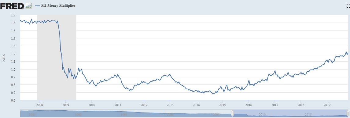 Before closing there is something else going on in the economy. The M1 multiplier is increasing, and our quantitative easing is occurring at a faster rate that any time in the near future. We have more money in circulation at an increased velocity under the Trump years, and our citizens are spending/borrowing it at one of the highest rates since the housing crash of 2008 [M1 multiplier can be much higher than the 2008 crash].