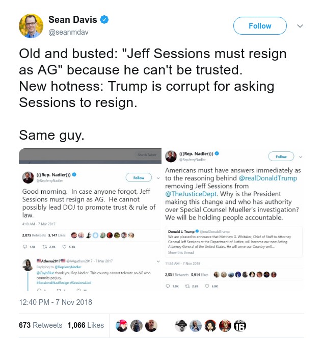 The first “fruits” of Midterm Elections have grown very quickly — Jefferson B. Sessions III, former Attorney General of the United States, just resigned at the request of the POTUS…