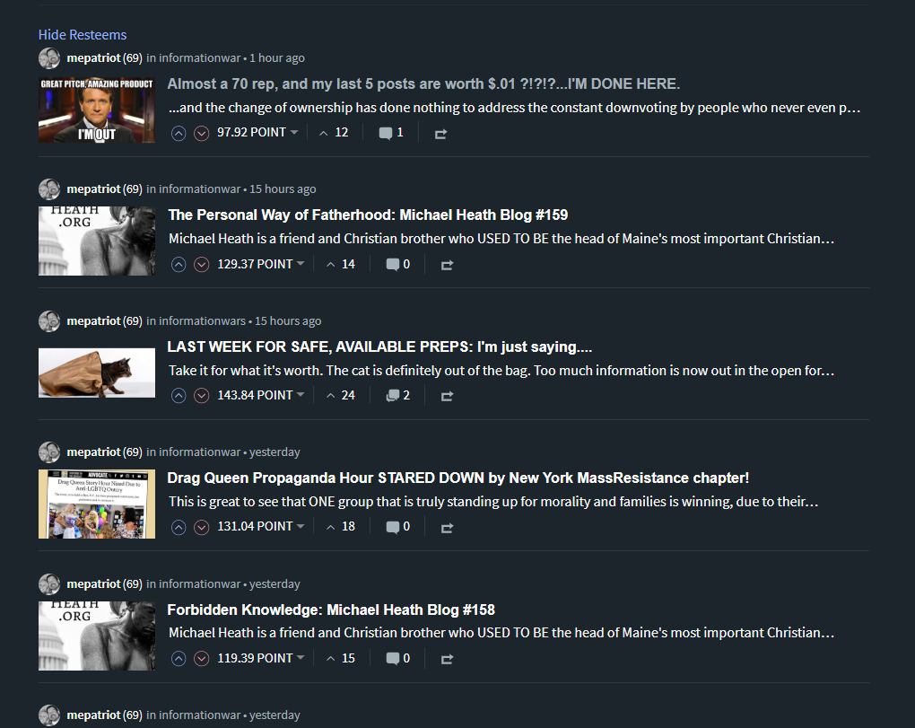 I don't blame you one bit my friend. Thank you for all your hard work, some of us did really appreciate it! I hope you can find a good new platform to really push your message because we need as many #truthers in the world as possible. Either way, you will be missed here. Take care and God Bless.