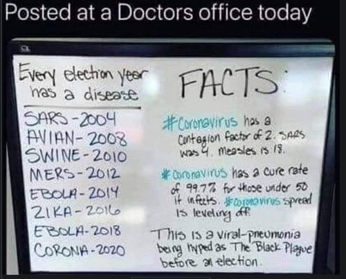 What if there was a virus released that was actually a danger to humanity, and the general population knew about it, but didn't really believe it since there have been so many announcements over the past couple of decades of another 'killer virus that is spreading', yet resulted in that virus fizzling out into recent 'history'... This has caused a desensitization in people today, causing them to spread and believe total bogus crap about things regarding the 'newest virus'. Such as: