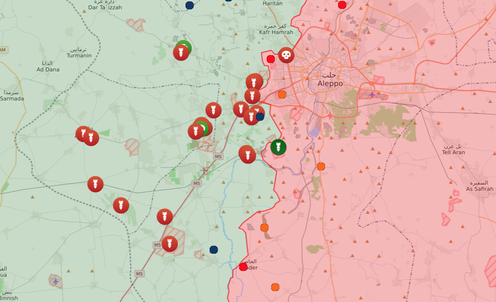 No response from the government forces to this attack yet. Instead, today we have seen a huge bombardments in the Western Aleppo which suggest that the first strong attack will come from that direction and proceed to the South following the M5 highway: