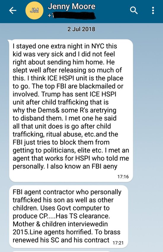 Paine describes Moore, an ex-cop, as "absolutely fearless and a warrior" when asked if she had concerns for her own safety. In another message she implicates the FBI as well as Democrats and Republicans as being at least compromised...