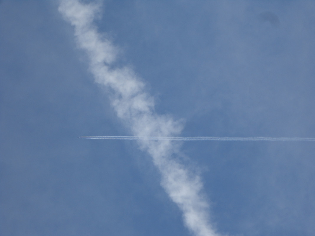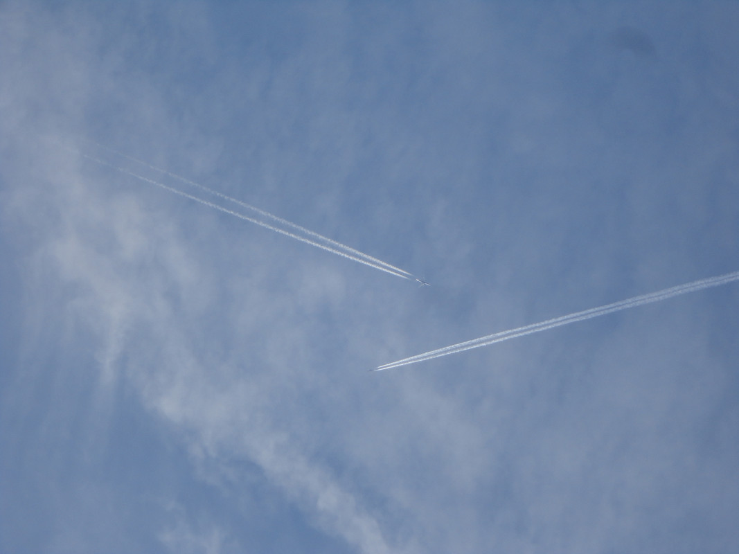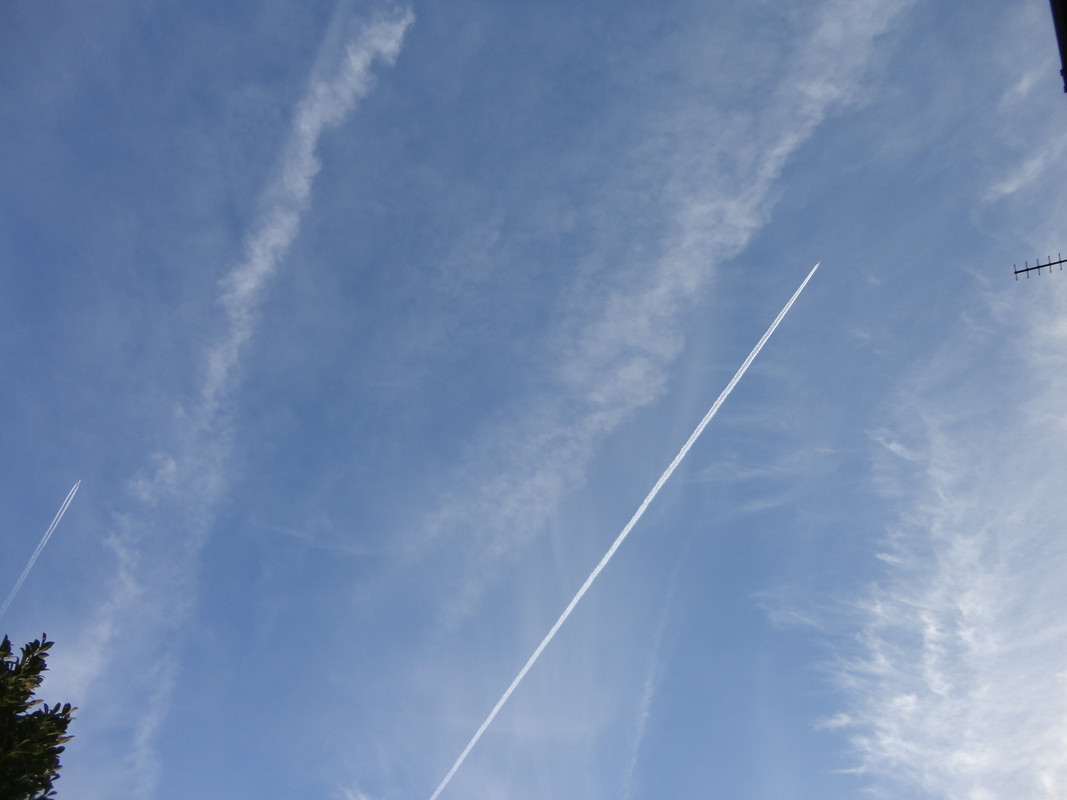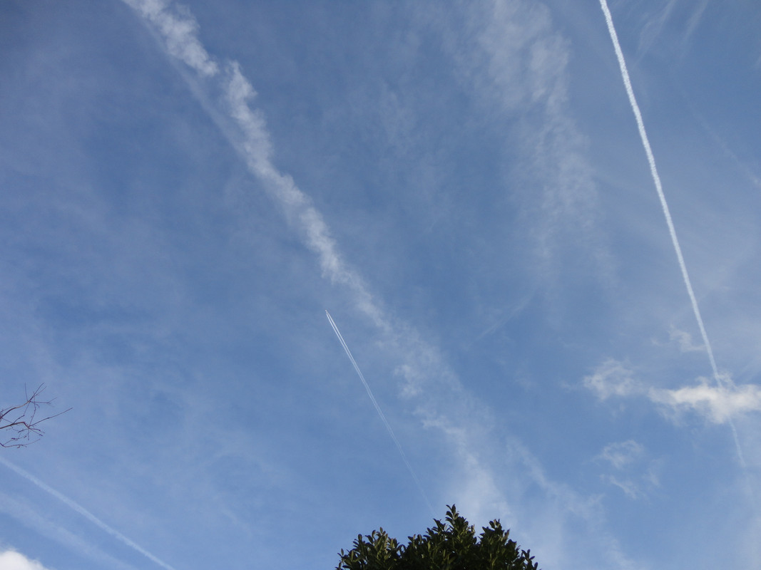Too much activity to keep up with today. The planes have been leaving trails since first thing this morning and have been non stop since. Here's a few of today's culprits.
