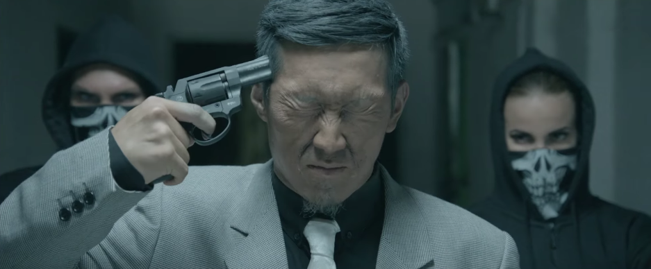 The following scenes looks like the two kidnapped kids forces one of the men to do suicide: