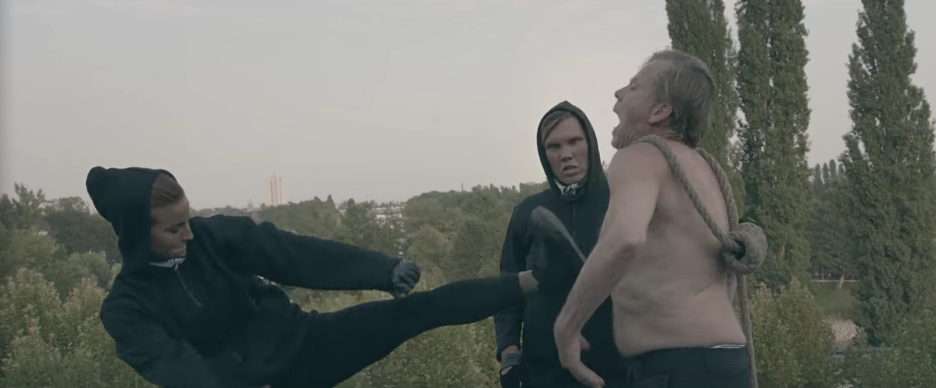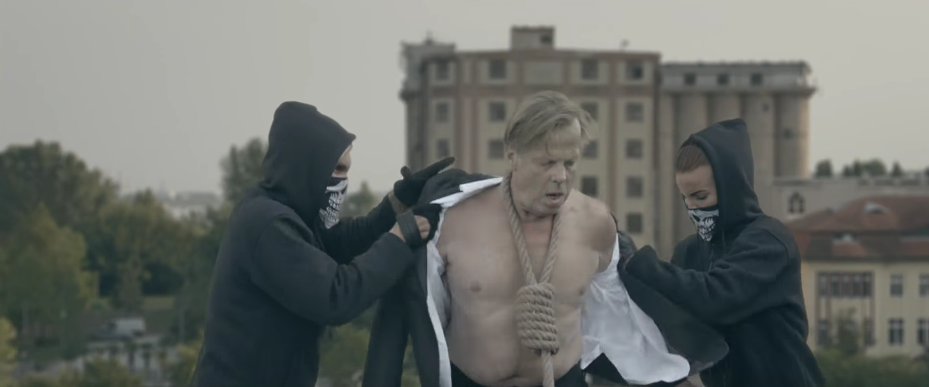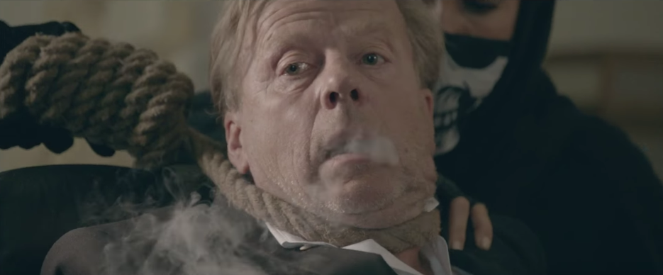 Afterwards, the two kidnapped kids looks like they want to force the politican to hang himself from the roof of his own house: