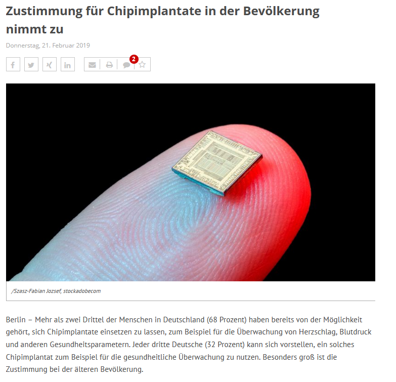 (The text (a news article from "arzteblatt.de" (something like a "serious" doctor magazine)) titles that the majority of the German people would say "Yes" to the implant of Microchips in the human body, which is a big lie in my eyes.)