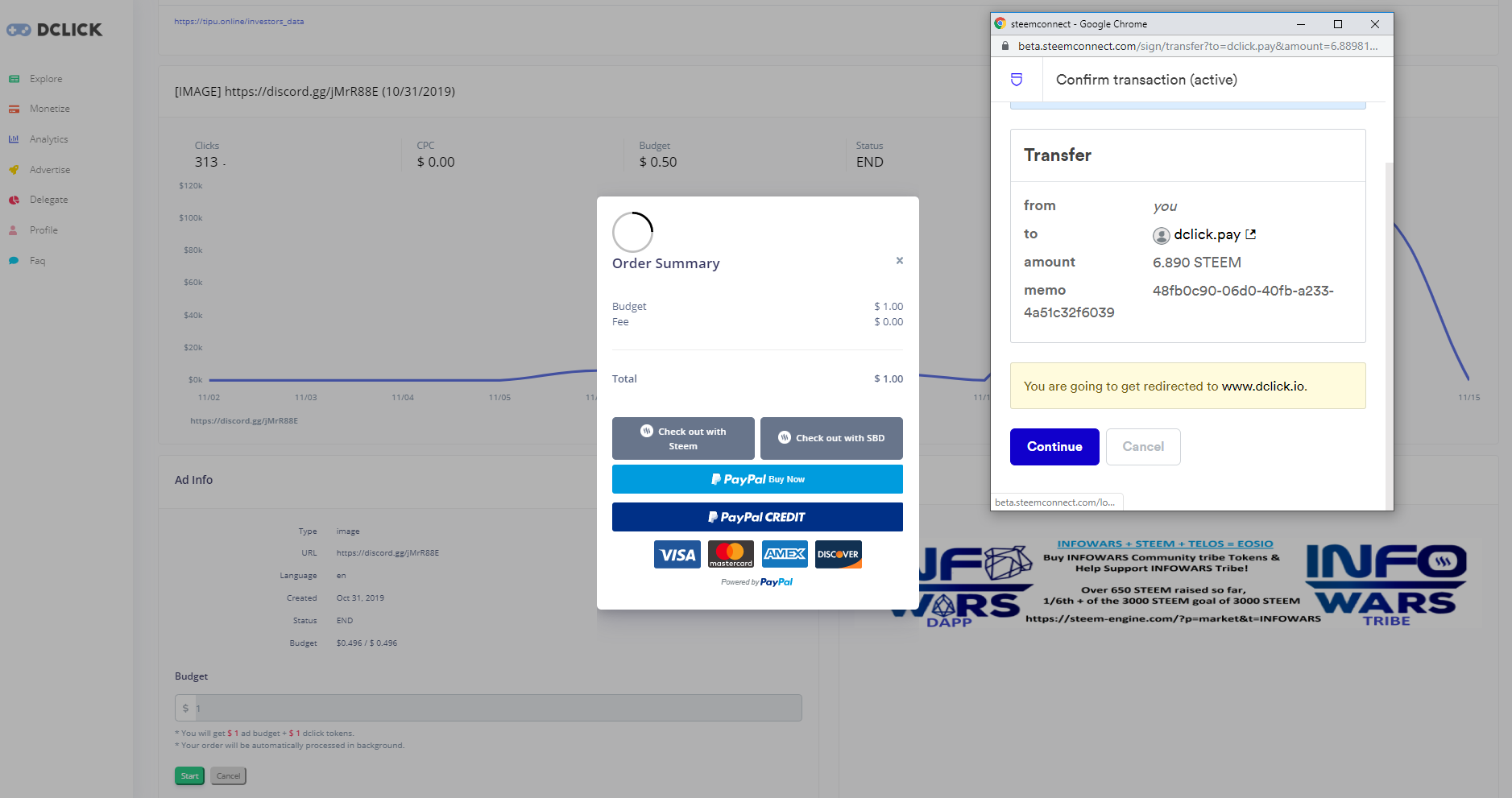 Here, we spent $1 in Ads from @dclick for infowars community token