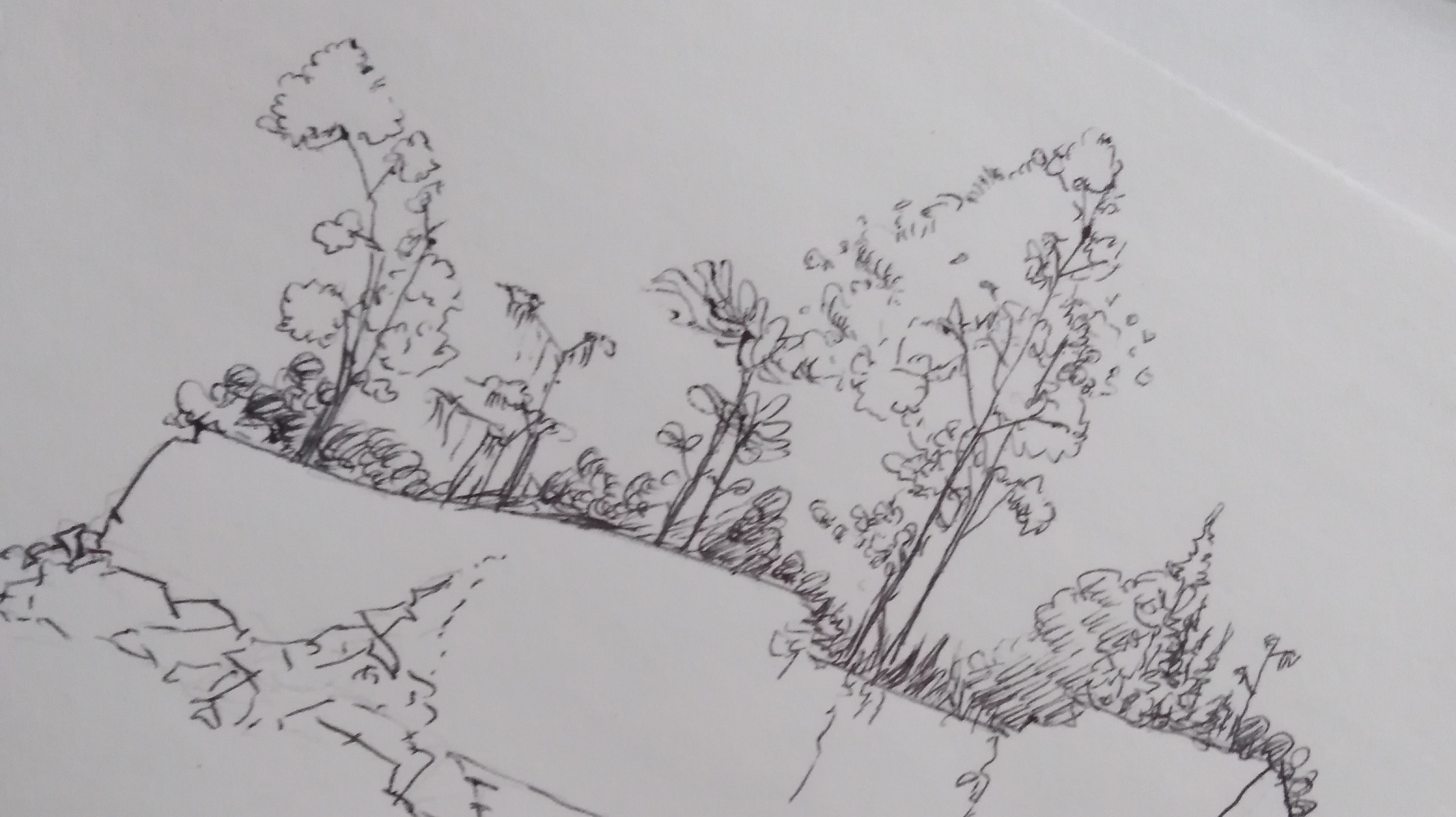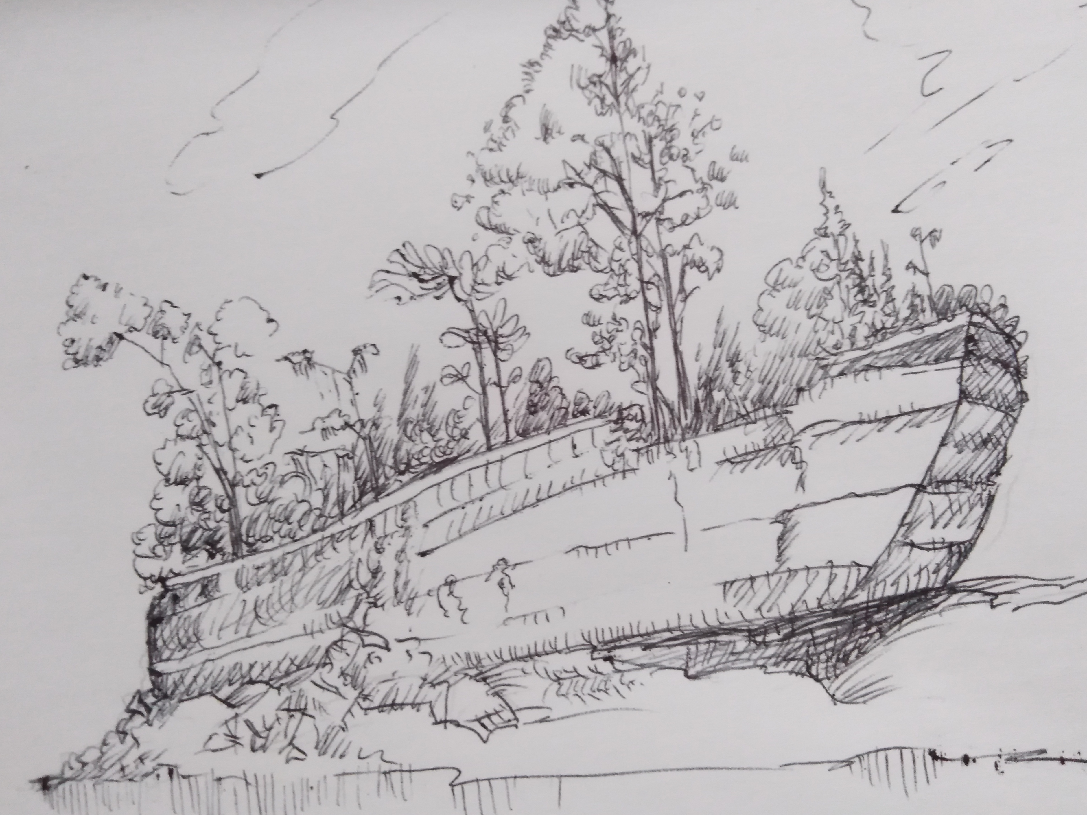 The reference photo is very chaotic looking because of the overgrowth of greens I decided I start with the ship and add the trees later. However at this stage I need to position some trees on spots I want thdm to be