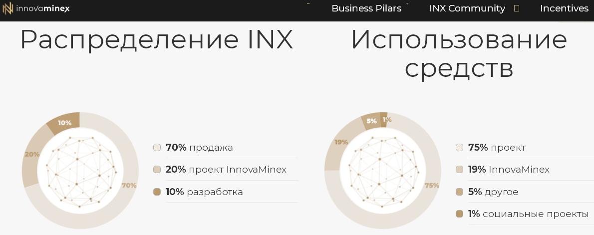Распределение монет INX и использование средств, производится в соответствии с рисунком, который указан ниже: