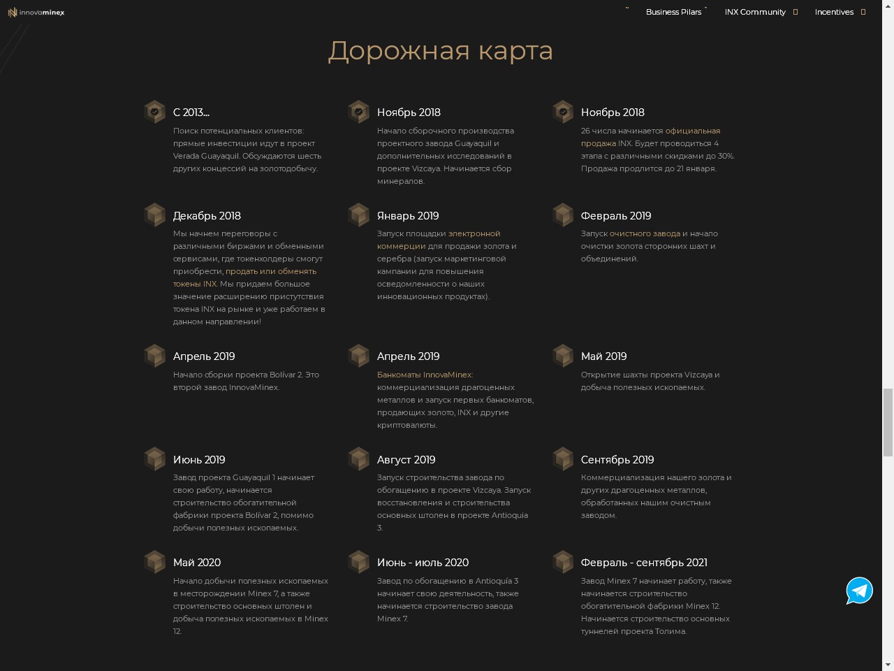 Таким образом, проект InnovaMinex имеет в своем фундаменте твердую почву для своего развития, которая подкреплена производственными мощностями, драгоценными металлами, хорошей командой и актуальной идеей. Все это даст возможность компании InnovaMinex сделать себя Blockchain №1 для драгоценных металлов.