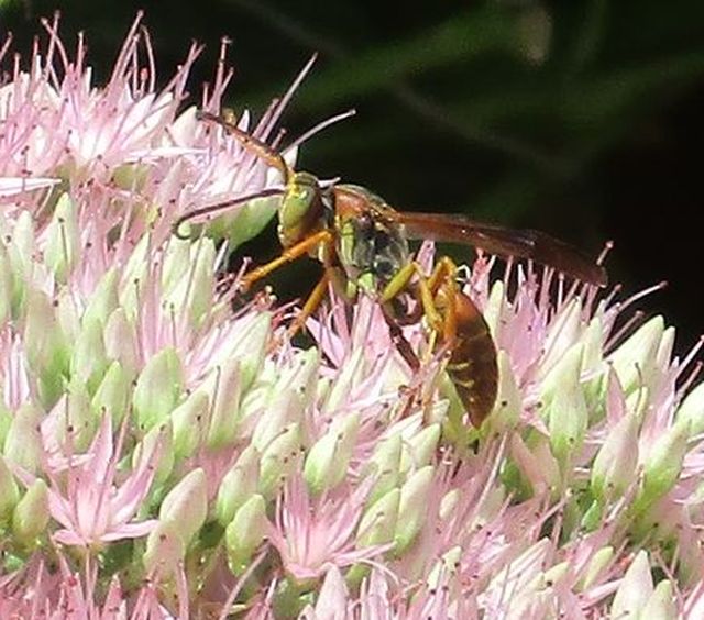 There are approximately 700 species of Paper Wasps worldwide and 22 species in North America. They make their papery nest by chewing plant and wood fibers, and mixing them with their saliva; hence their name. The Queen begins to build the nest in the spring, lays her eggs and forms the colony. In late summer or fall, the colony dies except for the new mated Queen who overwinters and begins the cycle anew the following spring.